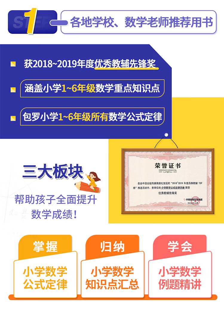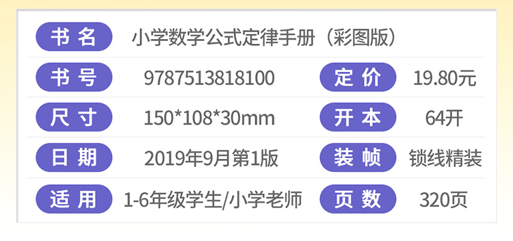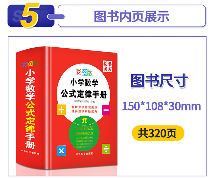 (仓发) 彩图版小学数学公式定律手册 获奖图书 小学生数学知识手册数学词典,例题精讲 1-6年级工具书/华语教学出版社/说词解字辞书研究中心/9787513818100