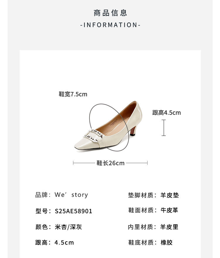 Westory2025年春季小方头低跟方扣通勤百搭浅口单鞋S25AE58901