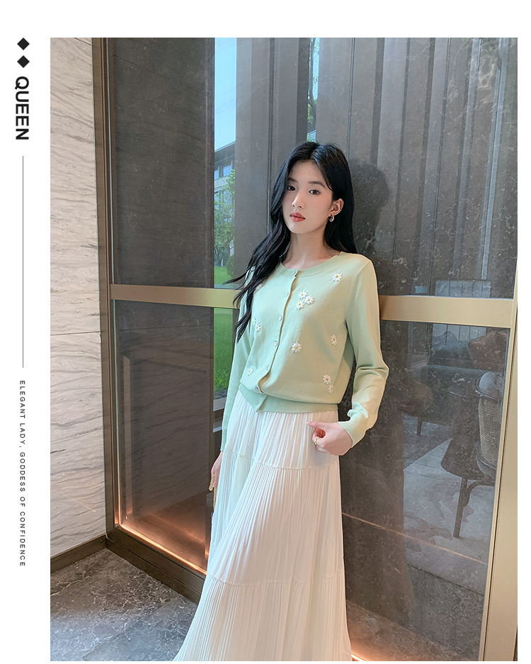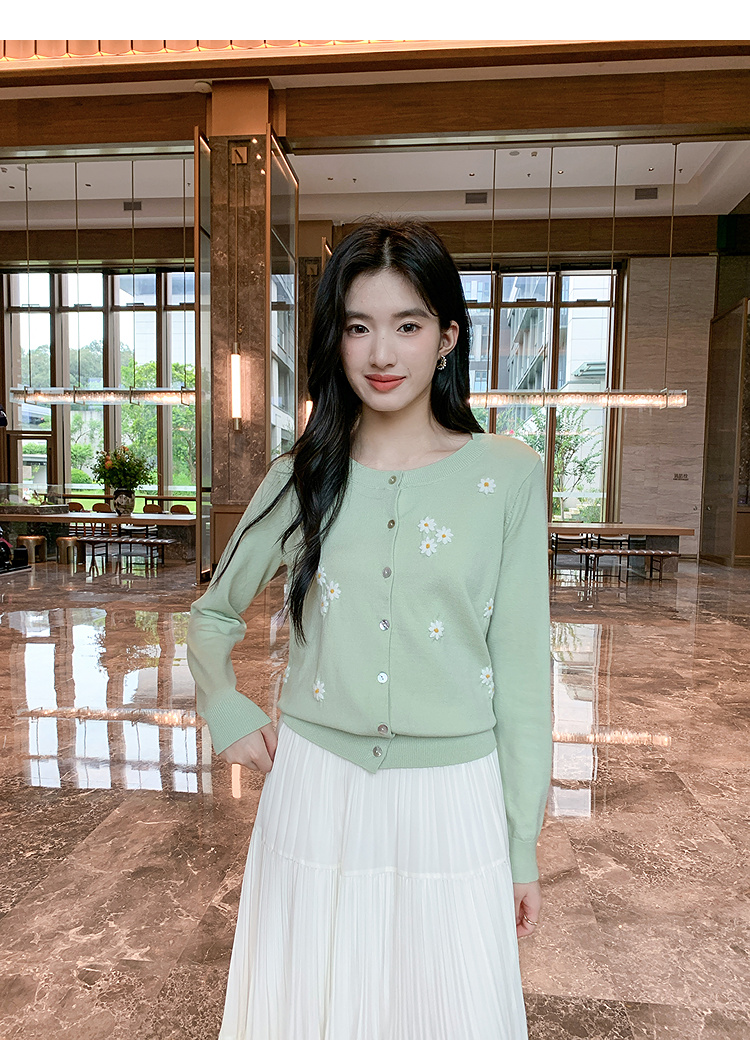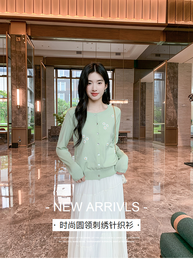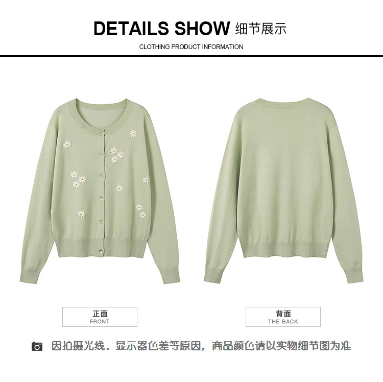 奢姿大码女装2025秋季时尚雏菊刺绣上衣胖妹妹清新减龄针织开衫9653669901