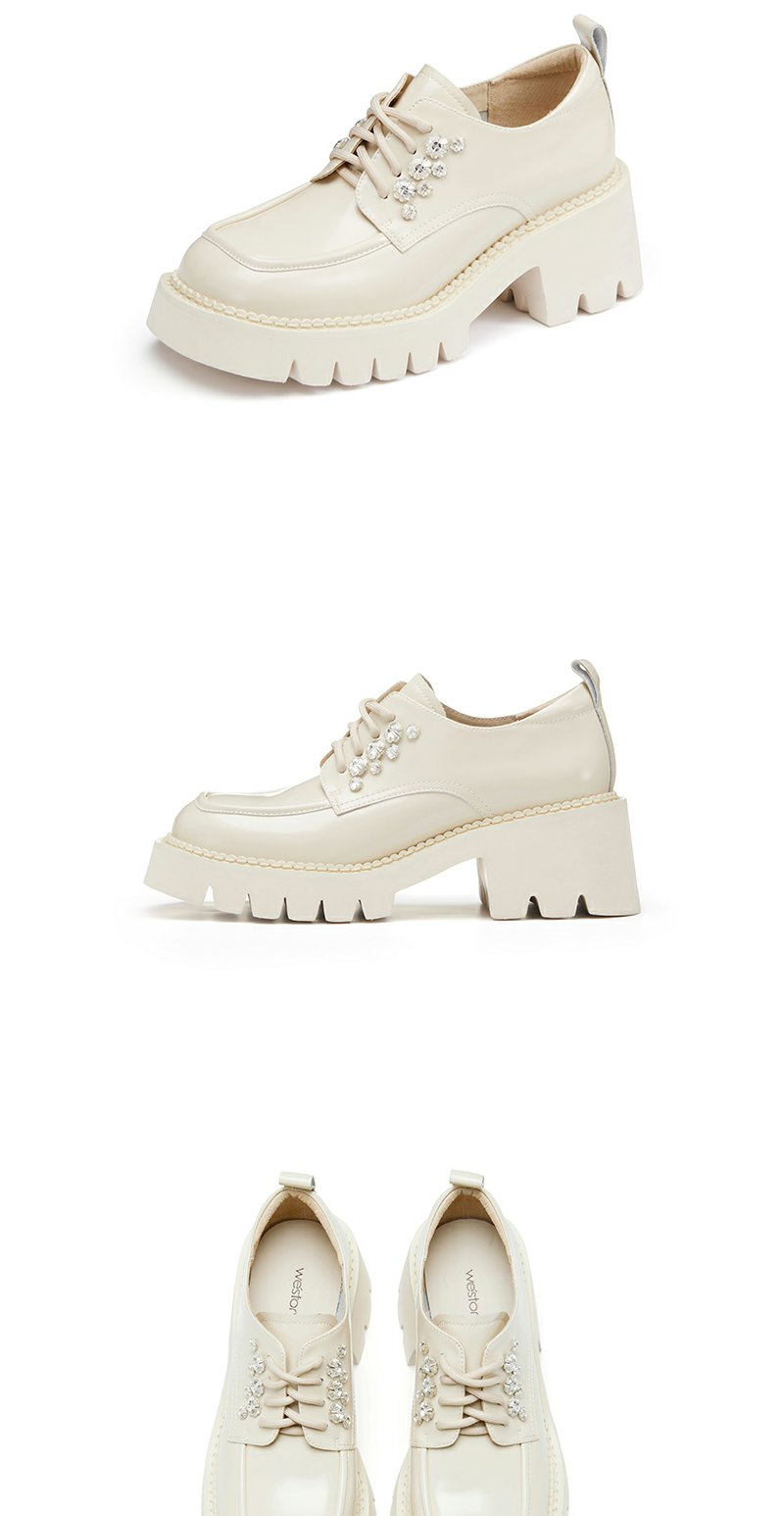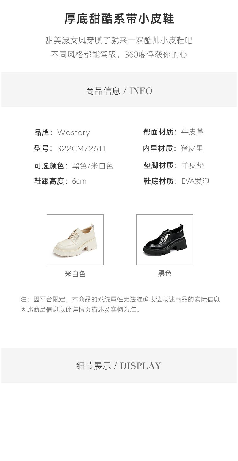 westory英伦风系带厚底纯色显瘦增高百搭小皮鞋22年秋季新款72611