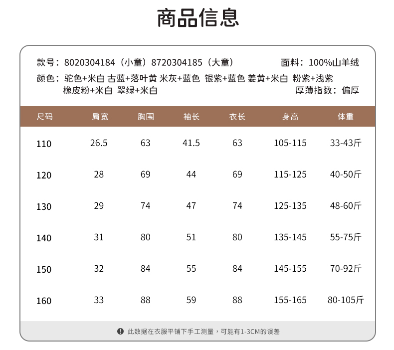| 参考身高: 110/52 120/56 130/60 140/64 150/68 160/72 | 适用季节: 冬季 |