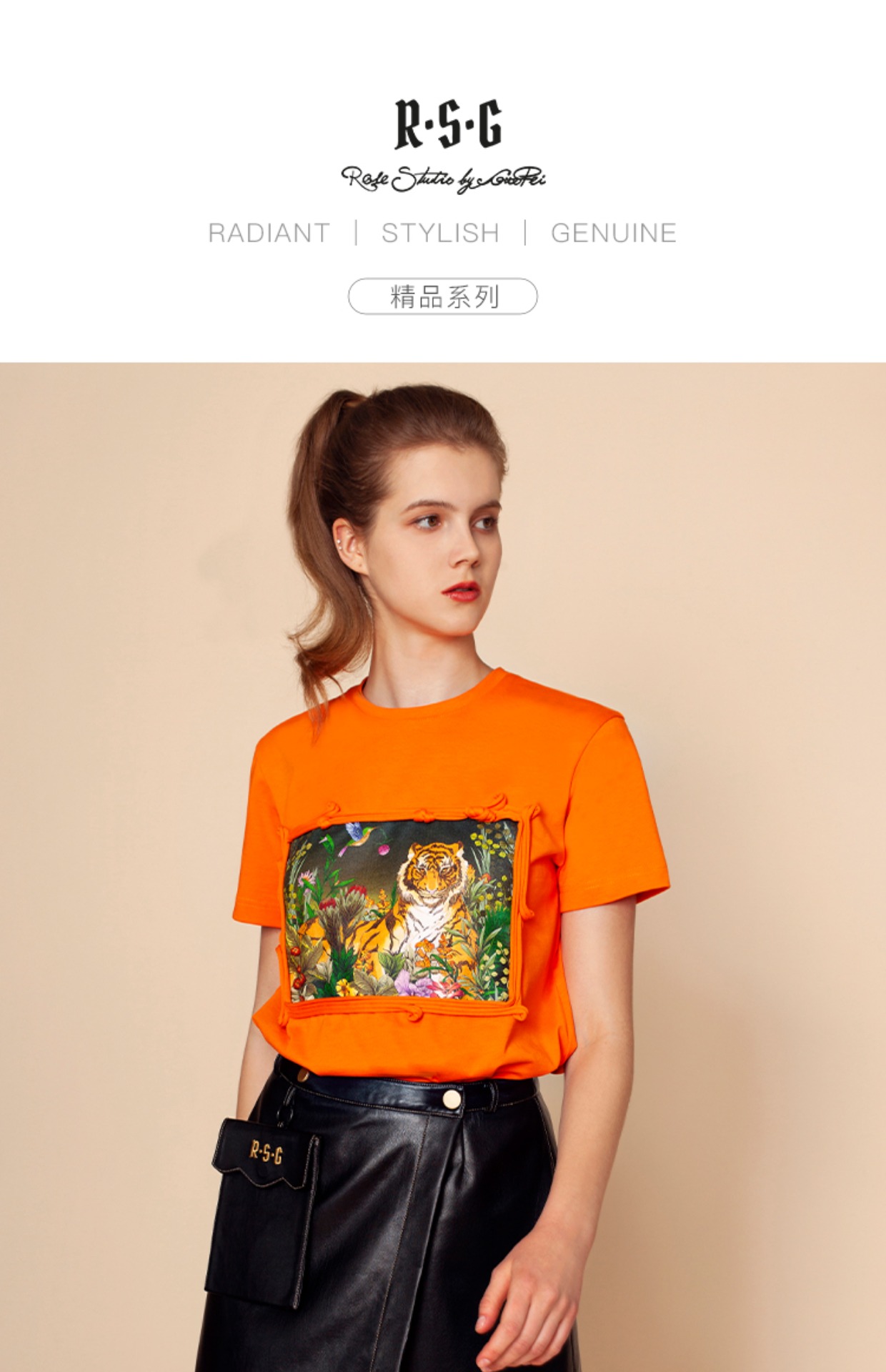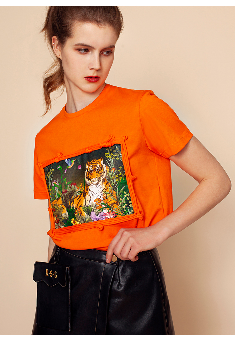 RSG郭培成衣品牌手绘老虎画框新中式国风印花夏季新款上衣