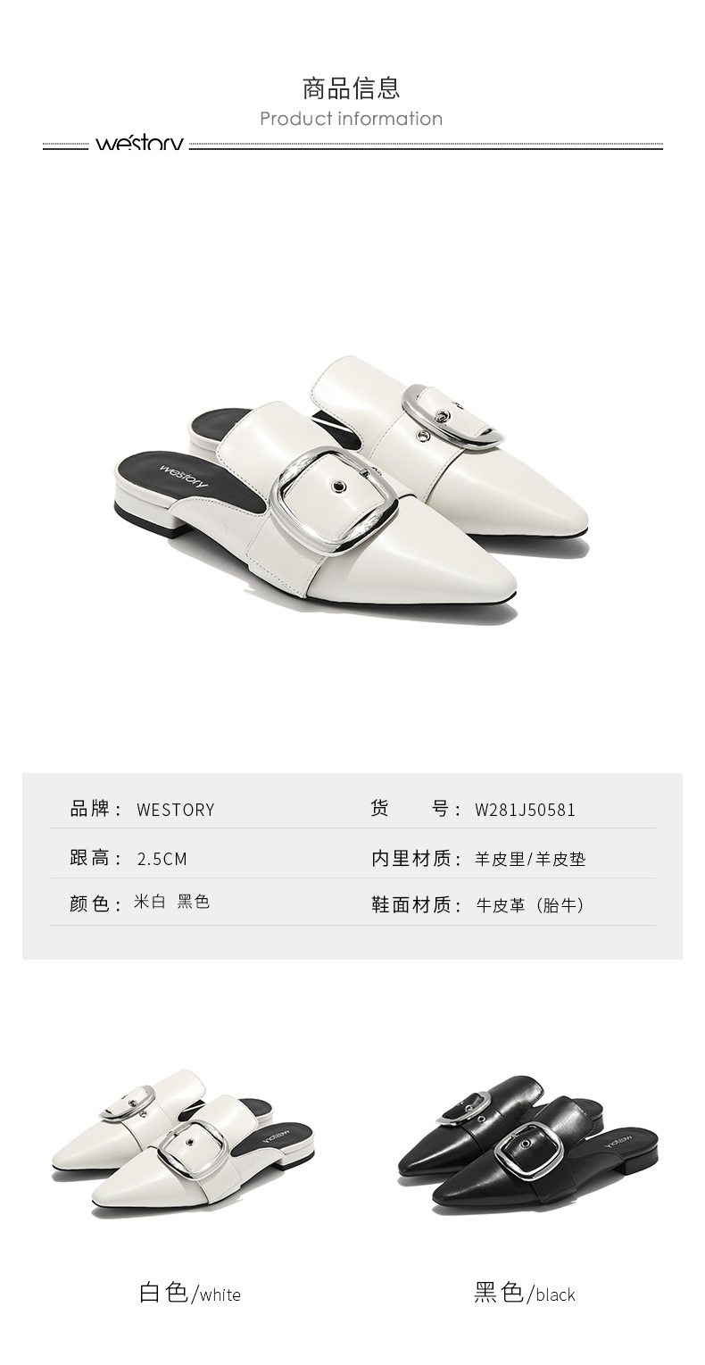 westory商场同款春夏包头拖鞋扣带尖头皮面女鞋拖鞋W281J50581