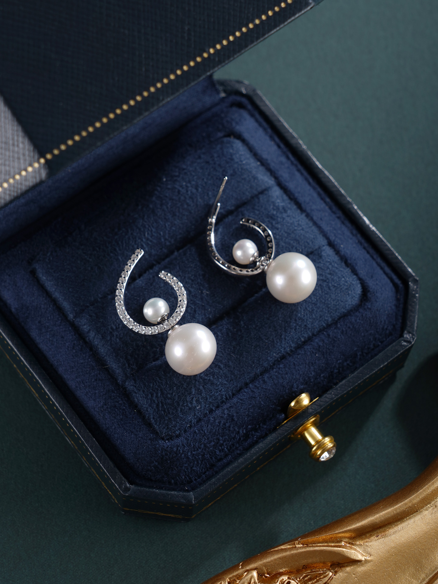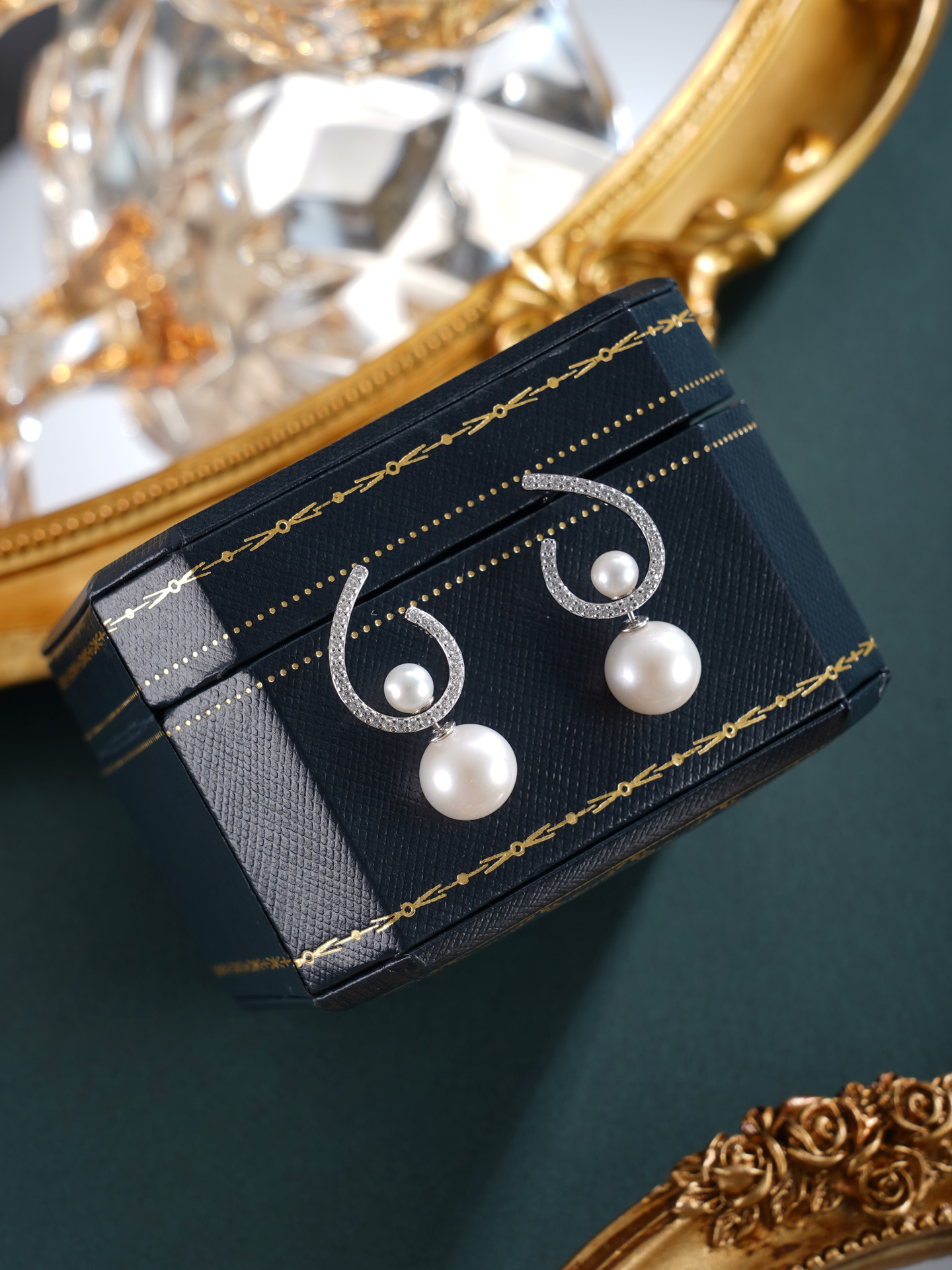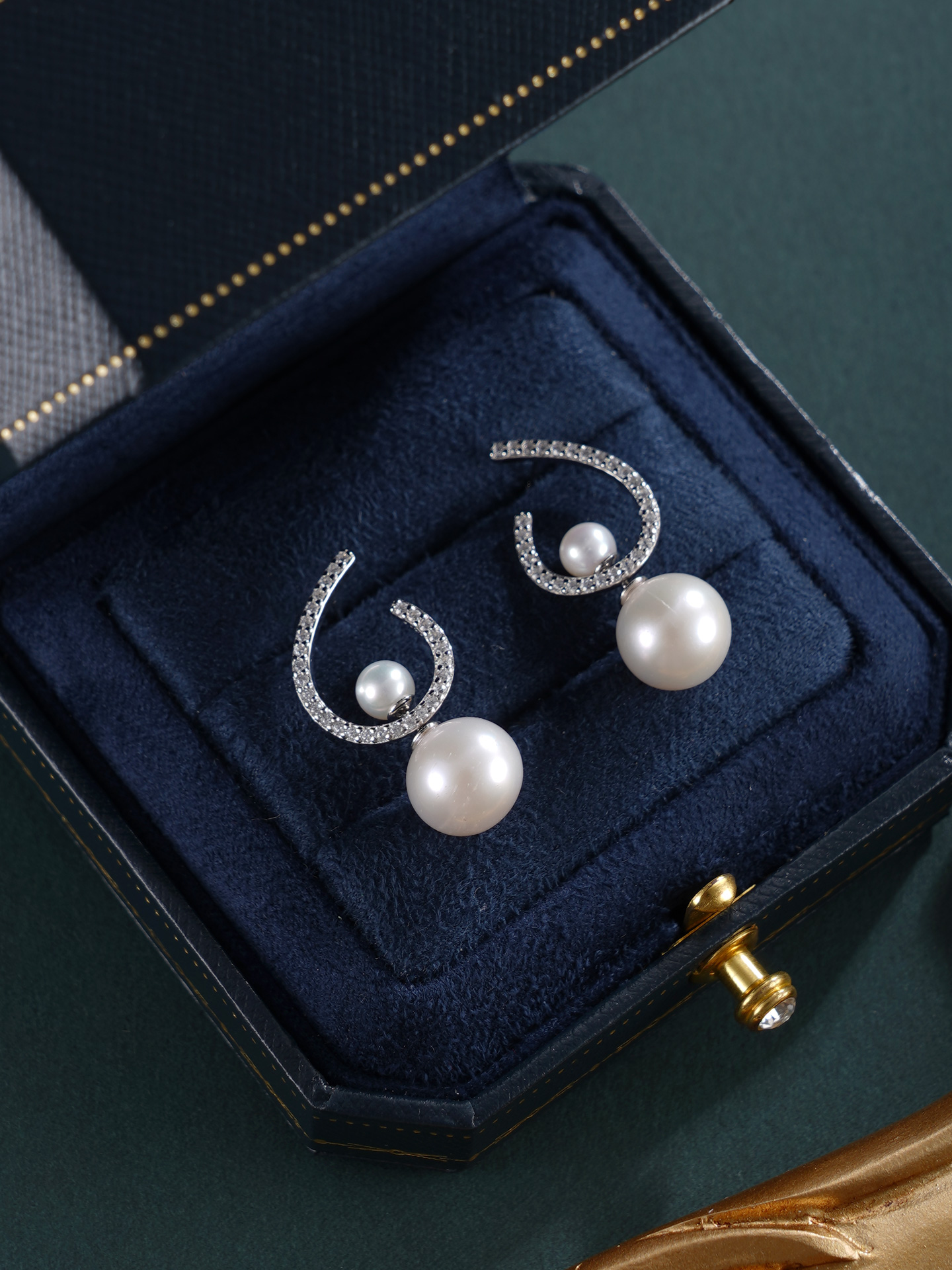 子佩集【潮汐物语】银S925珍珠惜王妃耳钉【MLEH027】9.5mm大珠半环吊球2601