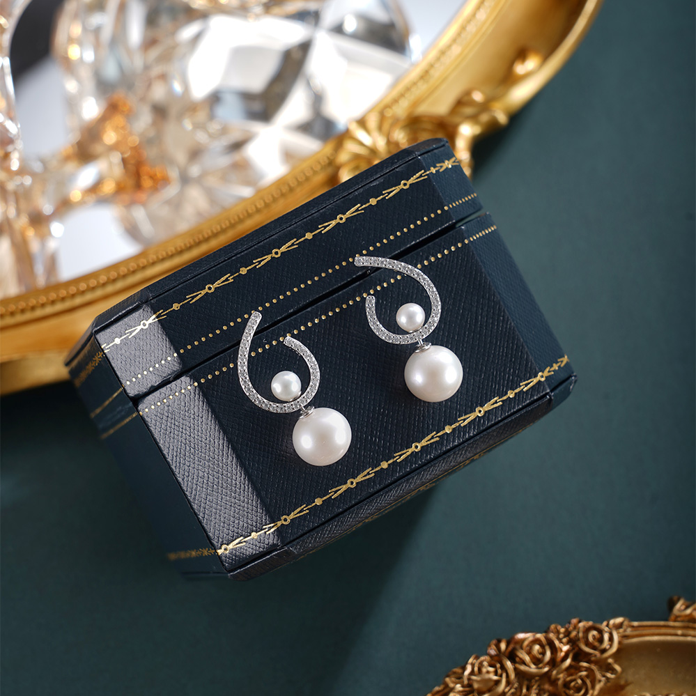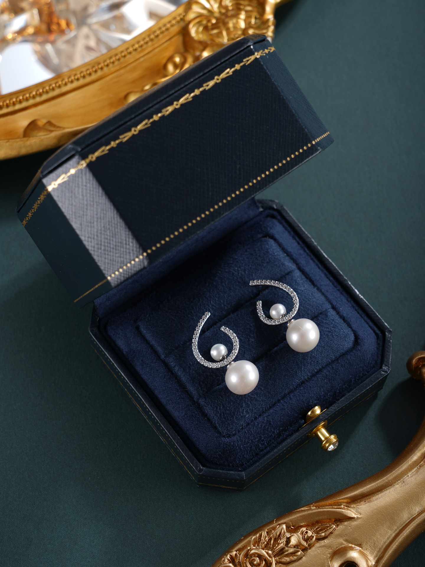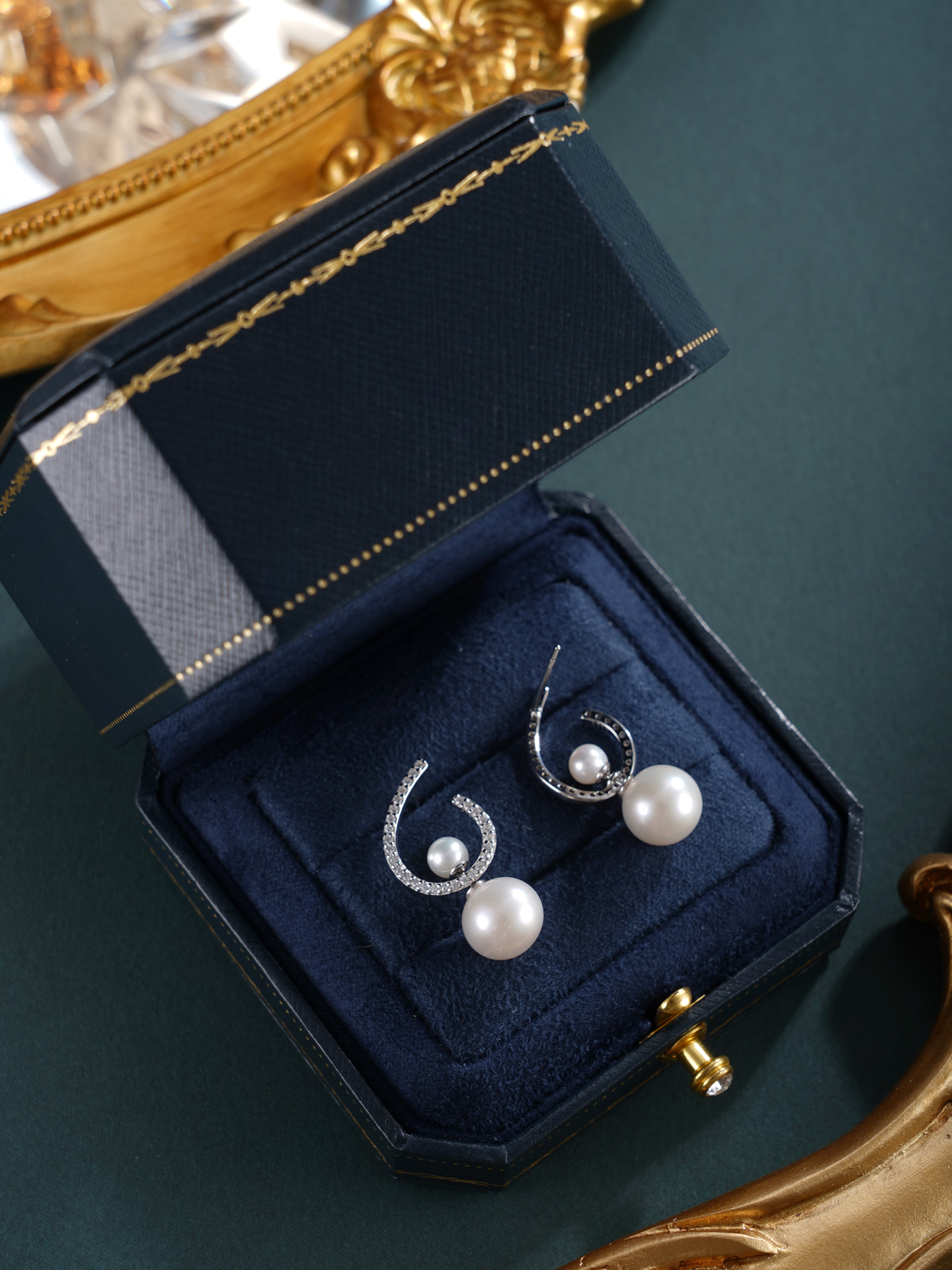 子佩集【潮汐物语】银S925珍珠惜王妃耳钉【MLEH027】9.5mm大珠半环吊球2601