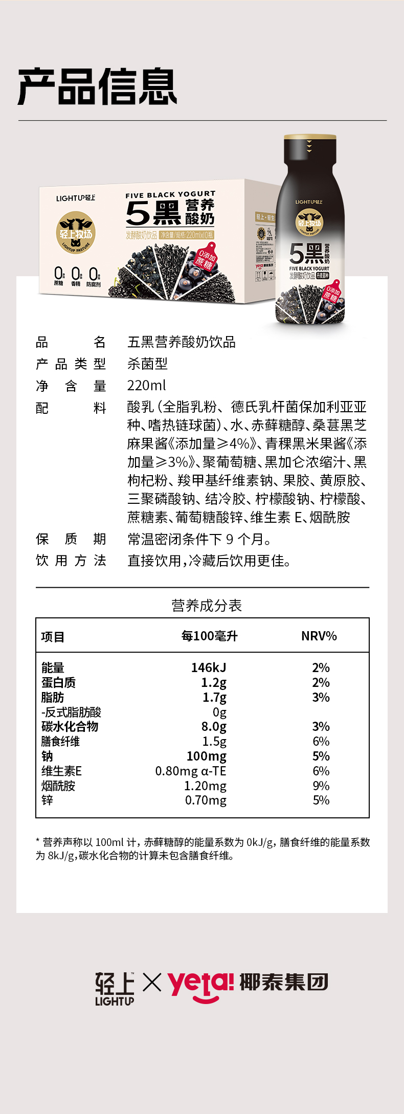 【轻上】五黑酸奶营养饮品 以黑养黑 焕发黑营养220ml*10瓶 48小时发货