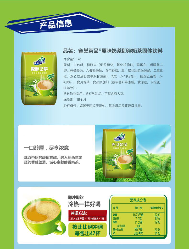 雀巢原味奶茶1000g/袋 速溶 冲泡 饮品 奶茶 港式奶茶 香滑热 包邮