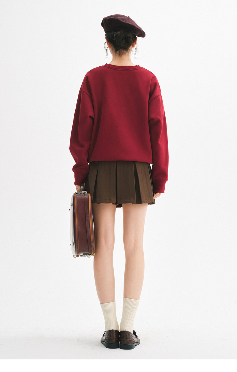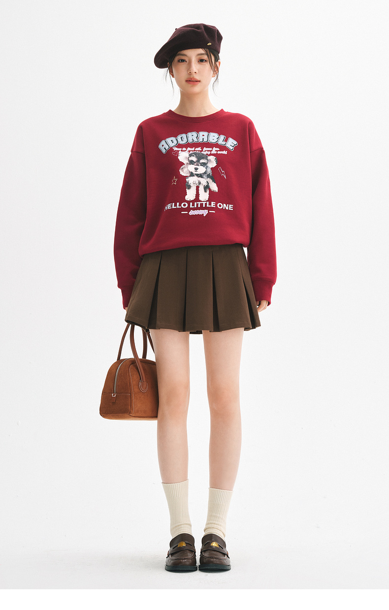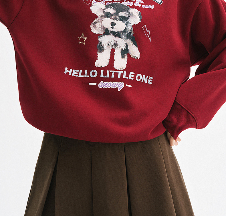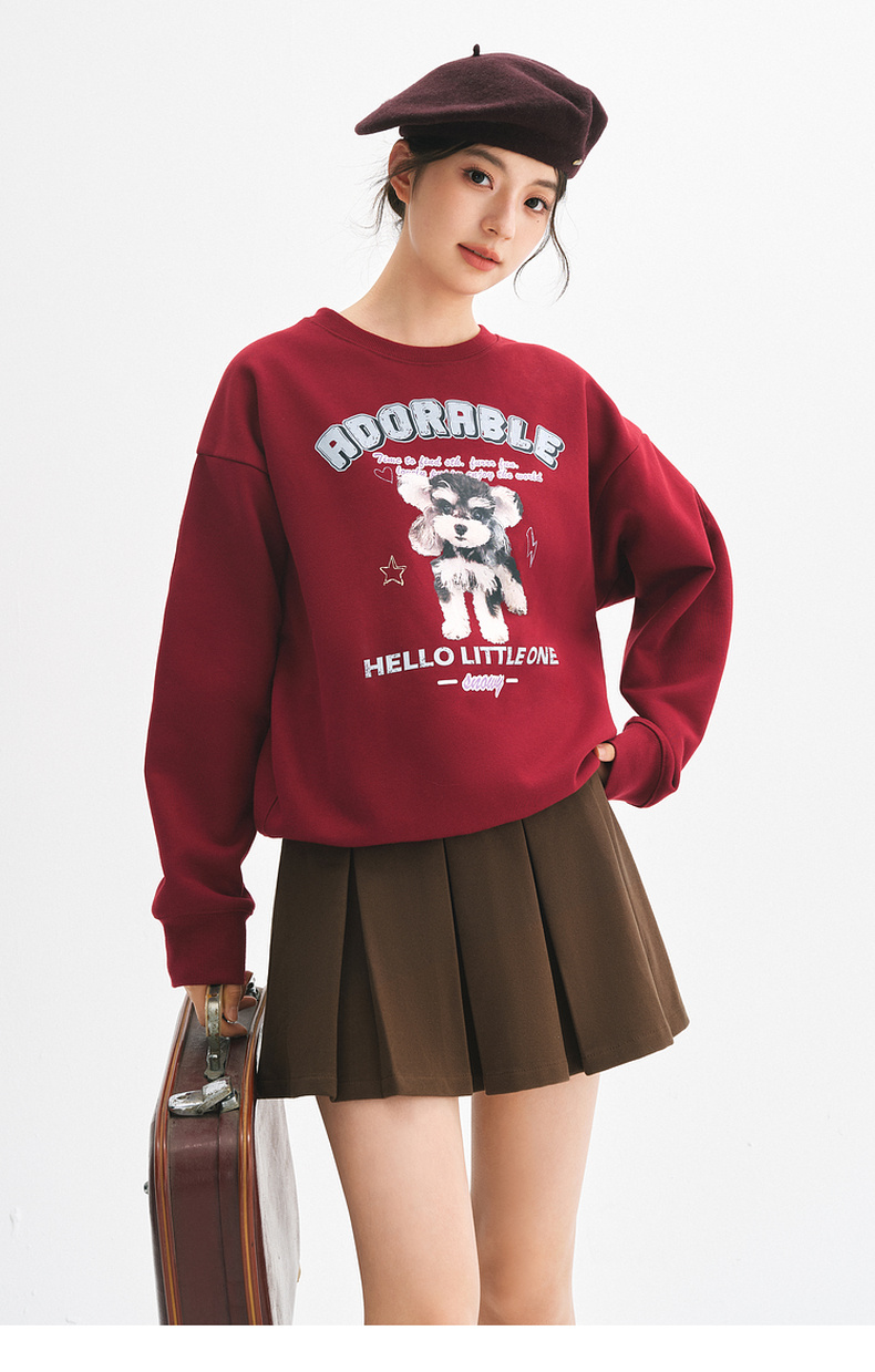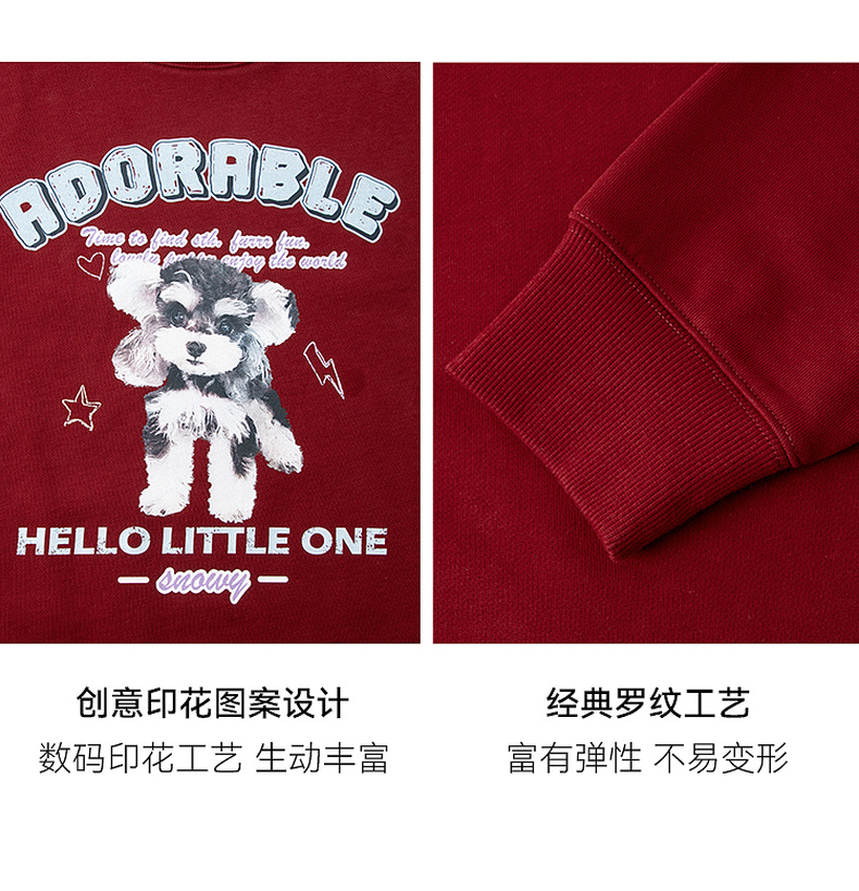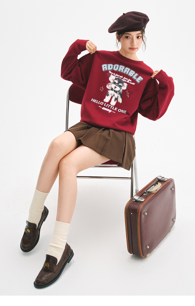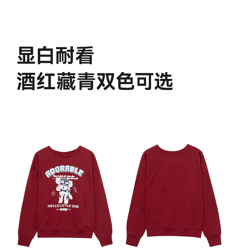 【严选】诗凡黎安可拉红数码印花圆领卫衣2024秋新款潮流宽松短款套头上衣7FA100751