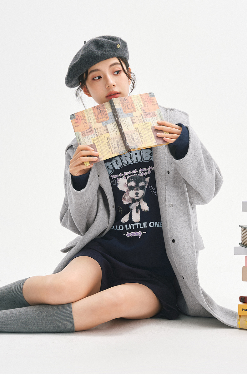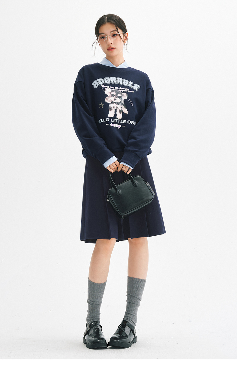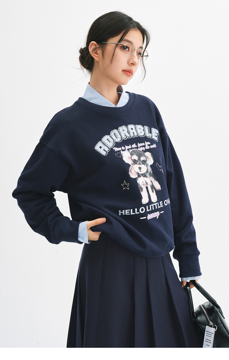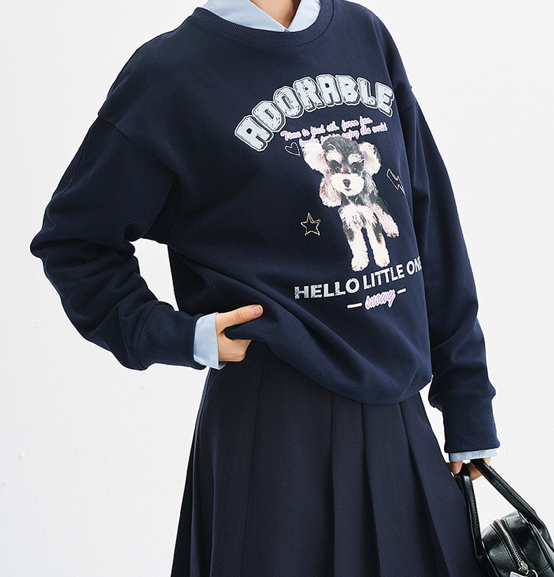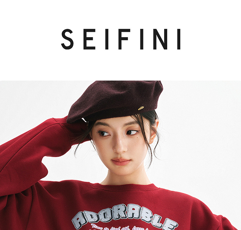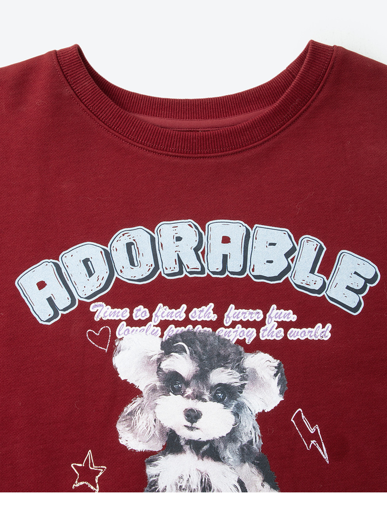 【严选】诗凡黎安可拉红数码印花圆领卫衣2024秋新款潮流宽松短款套头上衣7FA100751