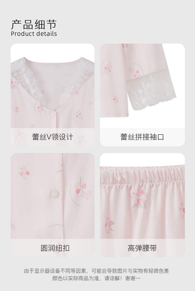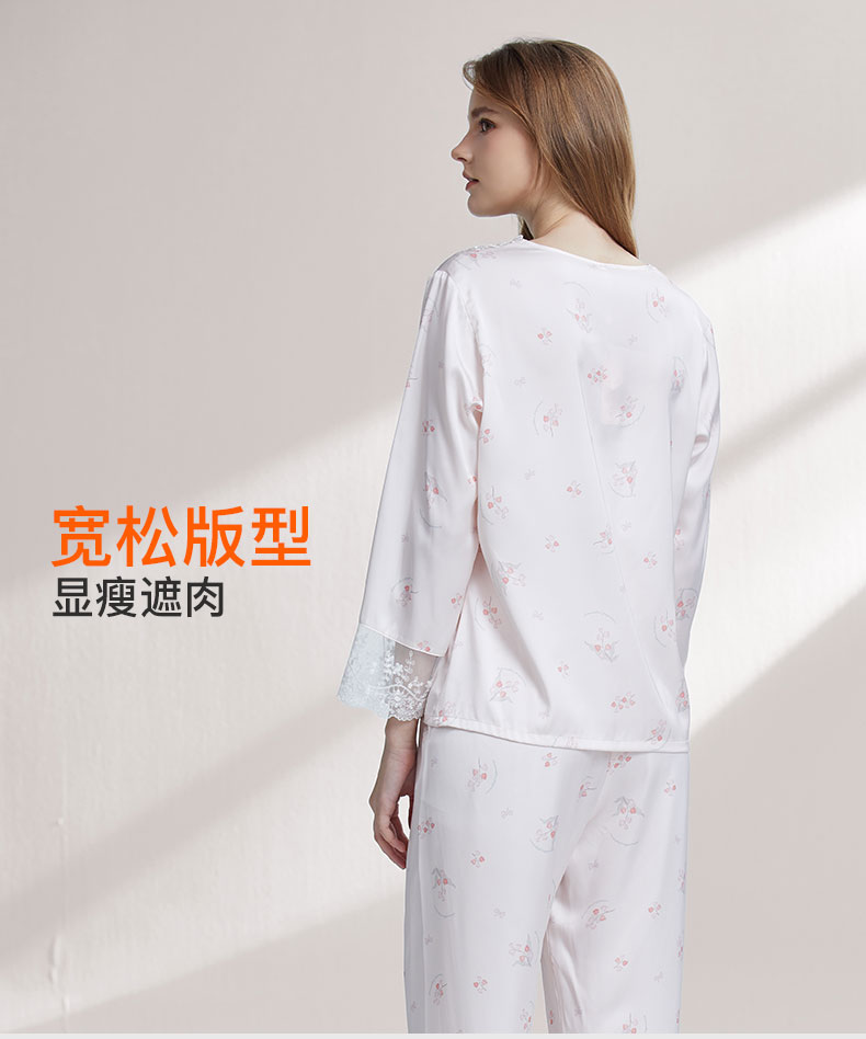 【7.5折限时特惠】【秀黛】女丝质印花长袖套装仿丝丝滑触感显瘦不臃肿甜美浪漫少女感女士春秋家居服睡衣W1551025T【门店同款】