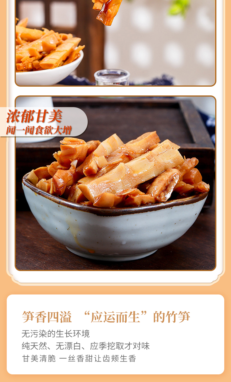 选用新鲜竹笋,传统工艺烹制,保留原有的鲜嫩爽口;
