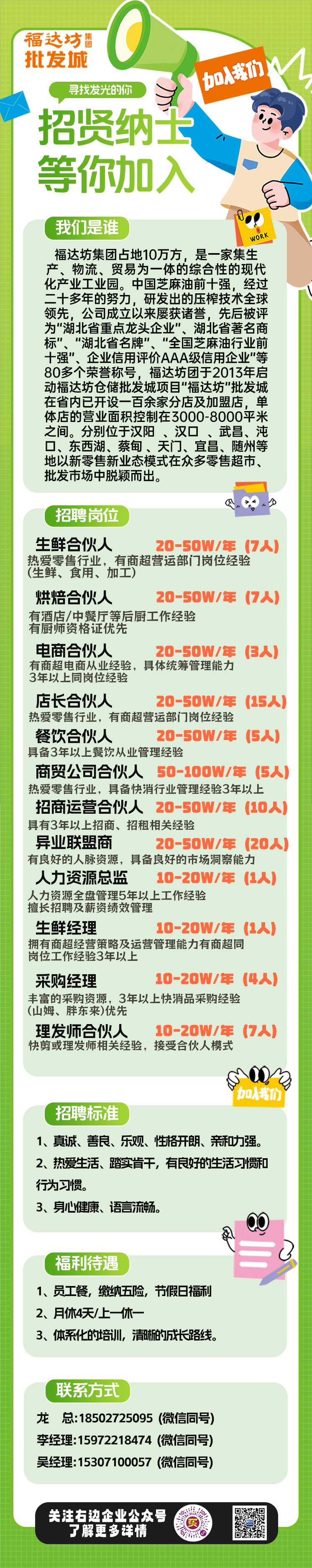 福达坊人才招聘,诚招优秀合伙人,共创宏图大业。