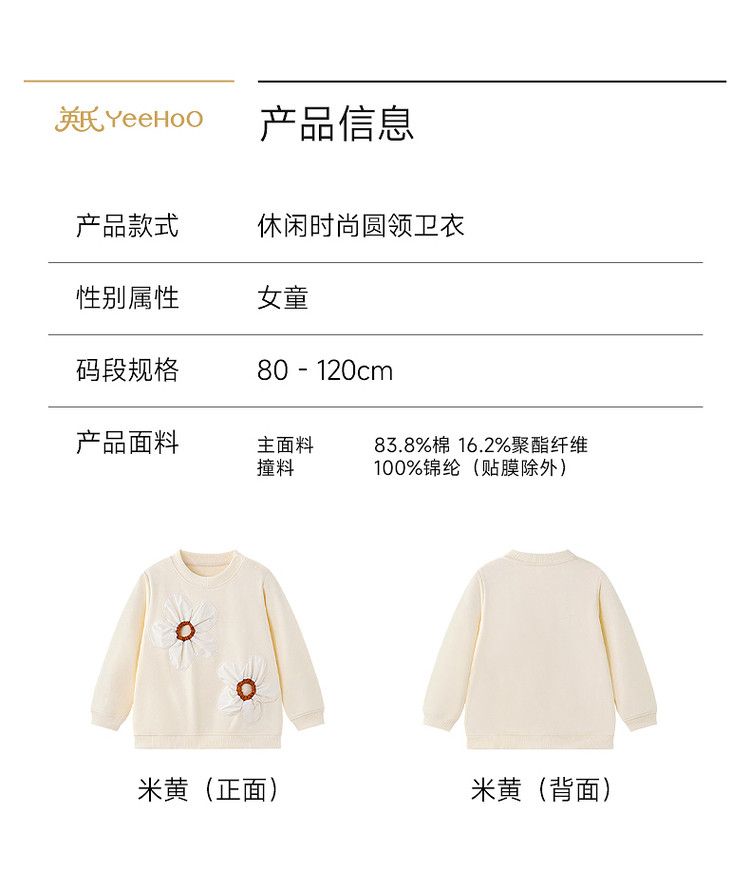 【高定系列】英氏童装儿童圆领卫衣女童宝宝春夏新款休闲可爱上衣YREAJ1S095A