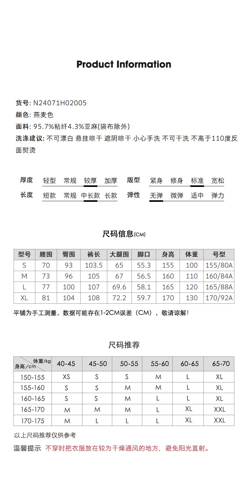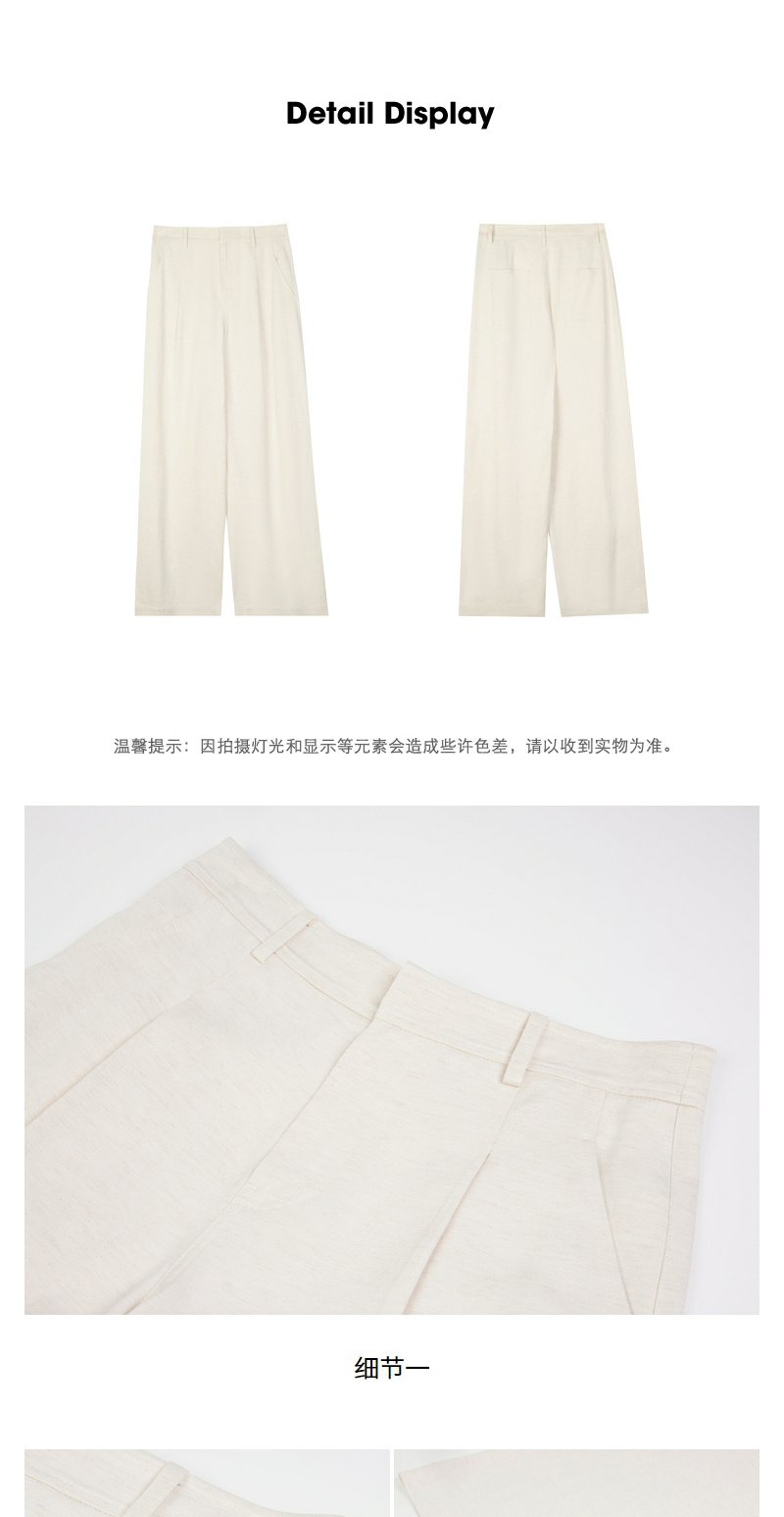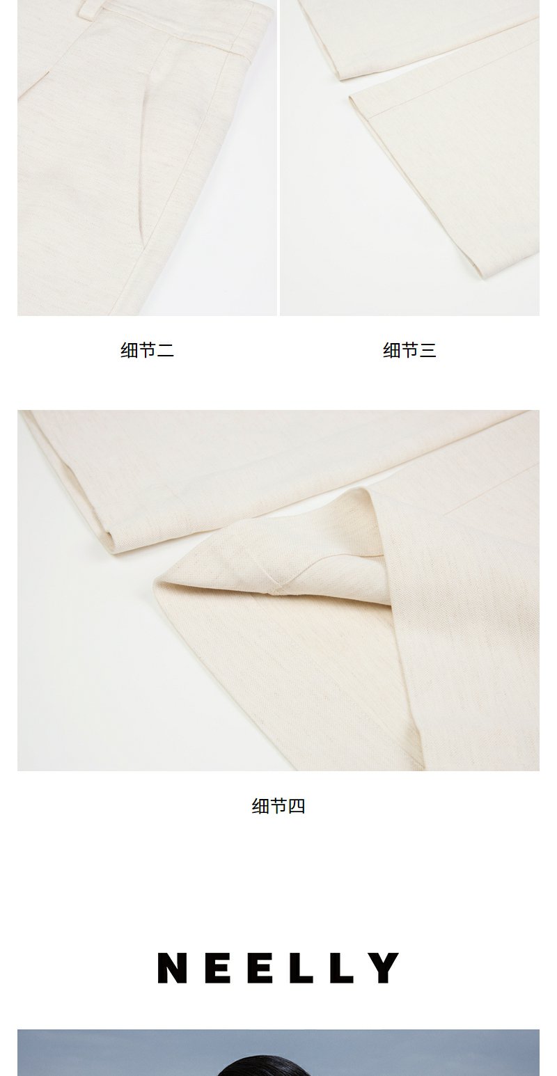 NEELLY纳俪商场同款秋季新款白色直筒休闲裤女通勤简约亚麻长裤N24071H02005