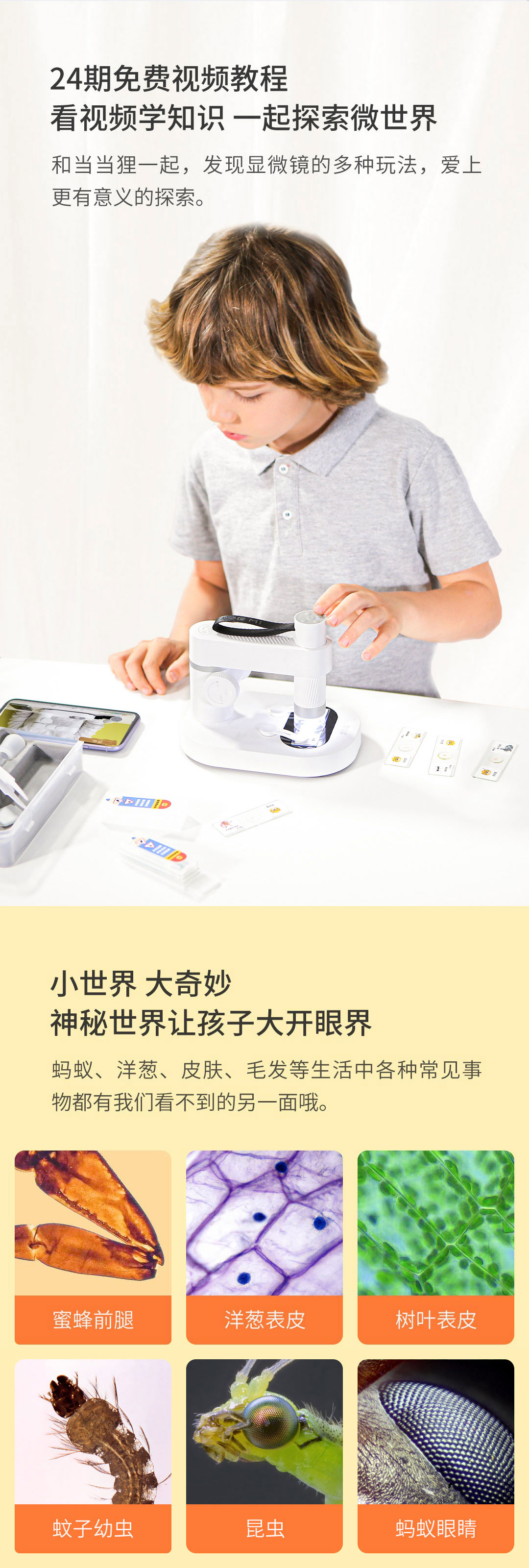 当当狸的这款便携式显微镜很推荐哈,小米小时候疯狂迷恋过好长一阵子,显微镜里的世界好神奇!公园里的花花草草,家里的各种物品,皮肤,头发,食物,甚至于垃圾,拿到什么东西都要来照一照看一看研究一番,充分激发孩子们的探索欲,满足他们的好奇心。是很益智的一款产品。