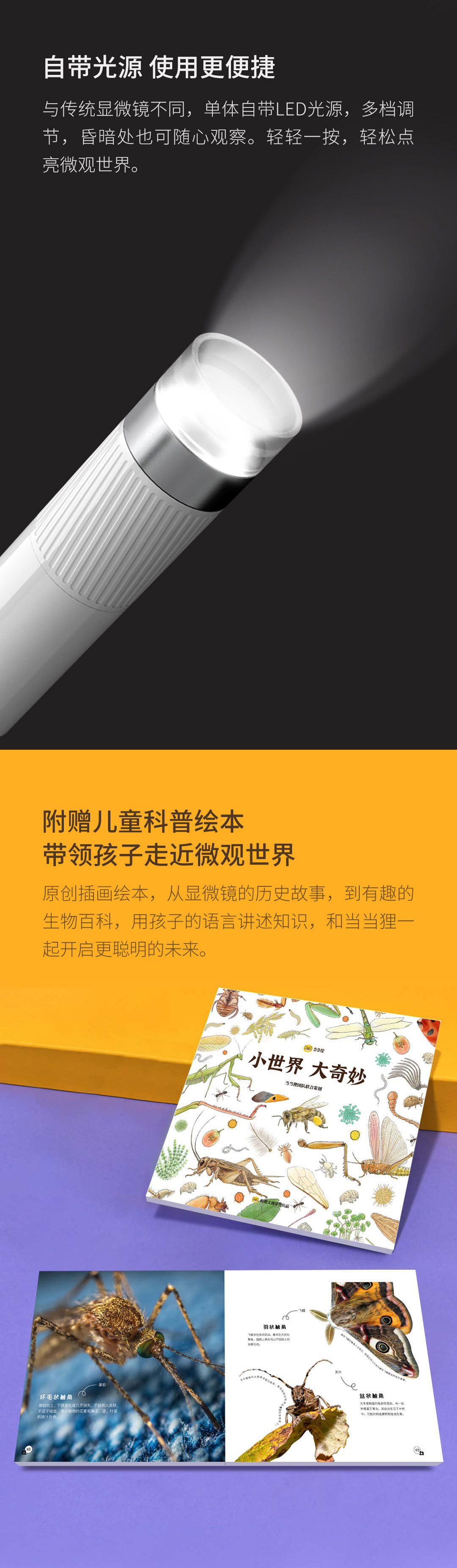 它小小的一支,随身携带就可以了,特别方便。有了这支显微镜,溜娃都不怕无趣,哈哈哈,因为整个世界都是可以被放大的呀,乐趣无穷!
