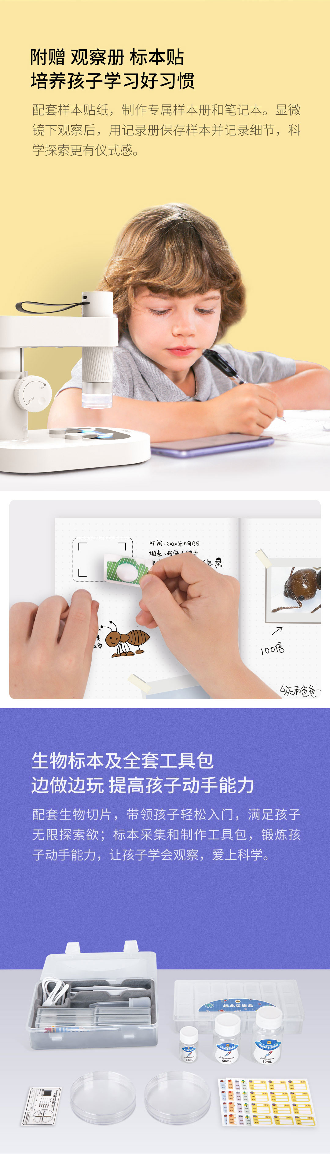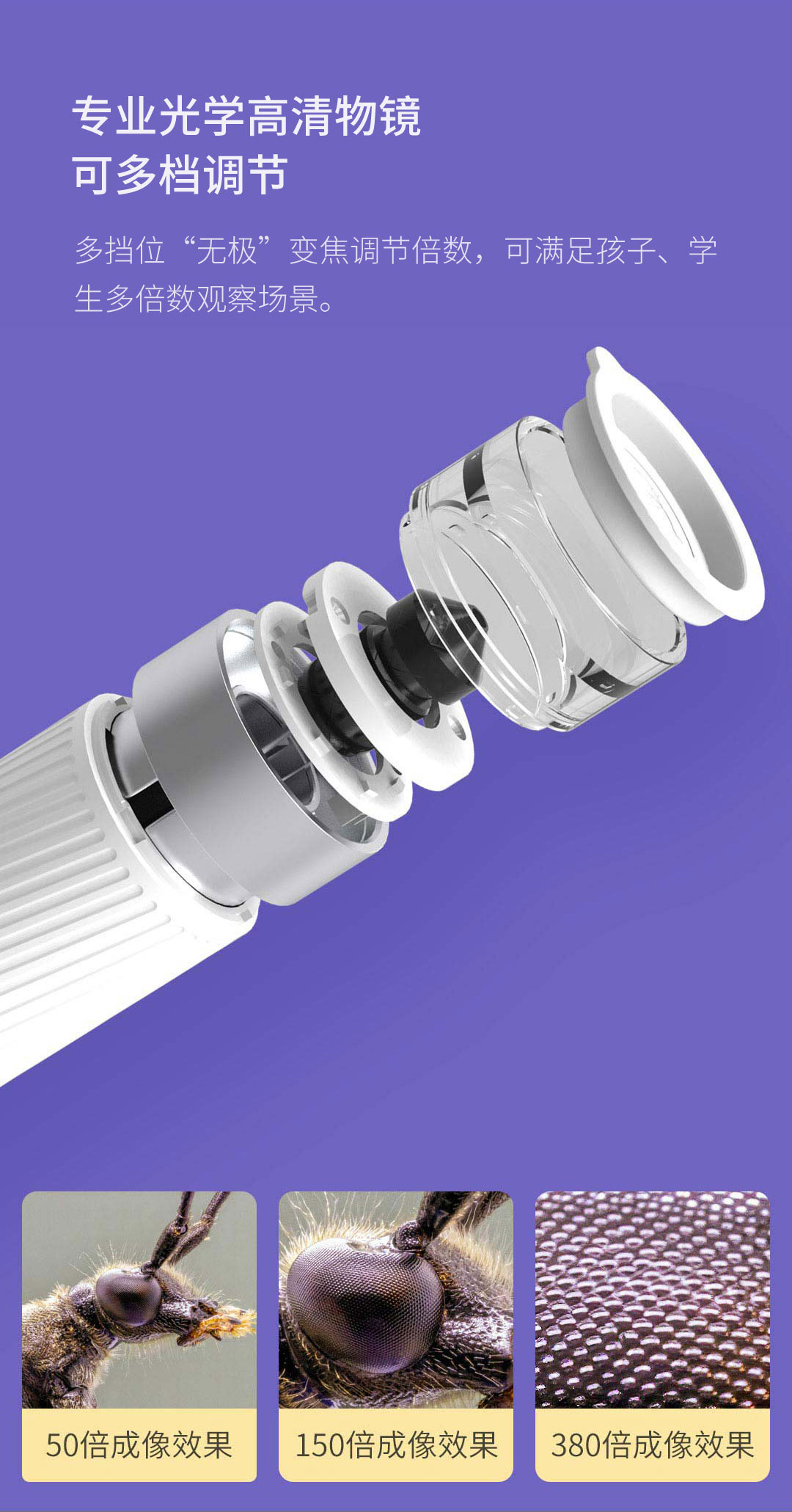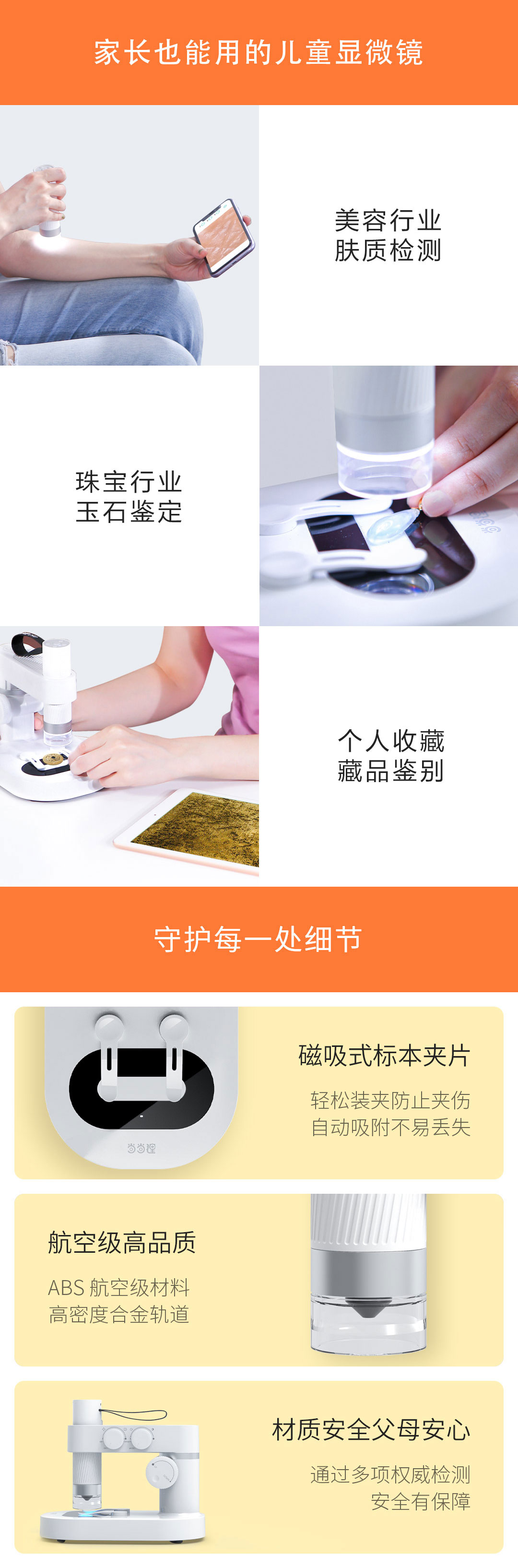 那么,选显微镜主要还是看它的放大倍数。这款显微镜可以最大放大到光学400倍的倍数!真的超赞!如果连接电脑,最大可以放大到10000倍,是其他小倍数的显微镜无法达到的清晰度。也不建议大家买小倍数的,因为孩子用几下就扔掉啦~~