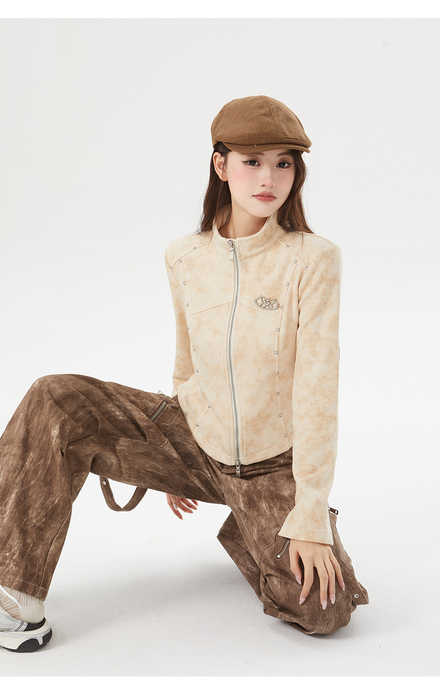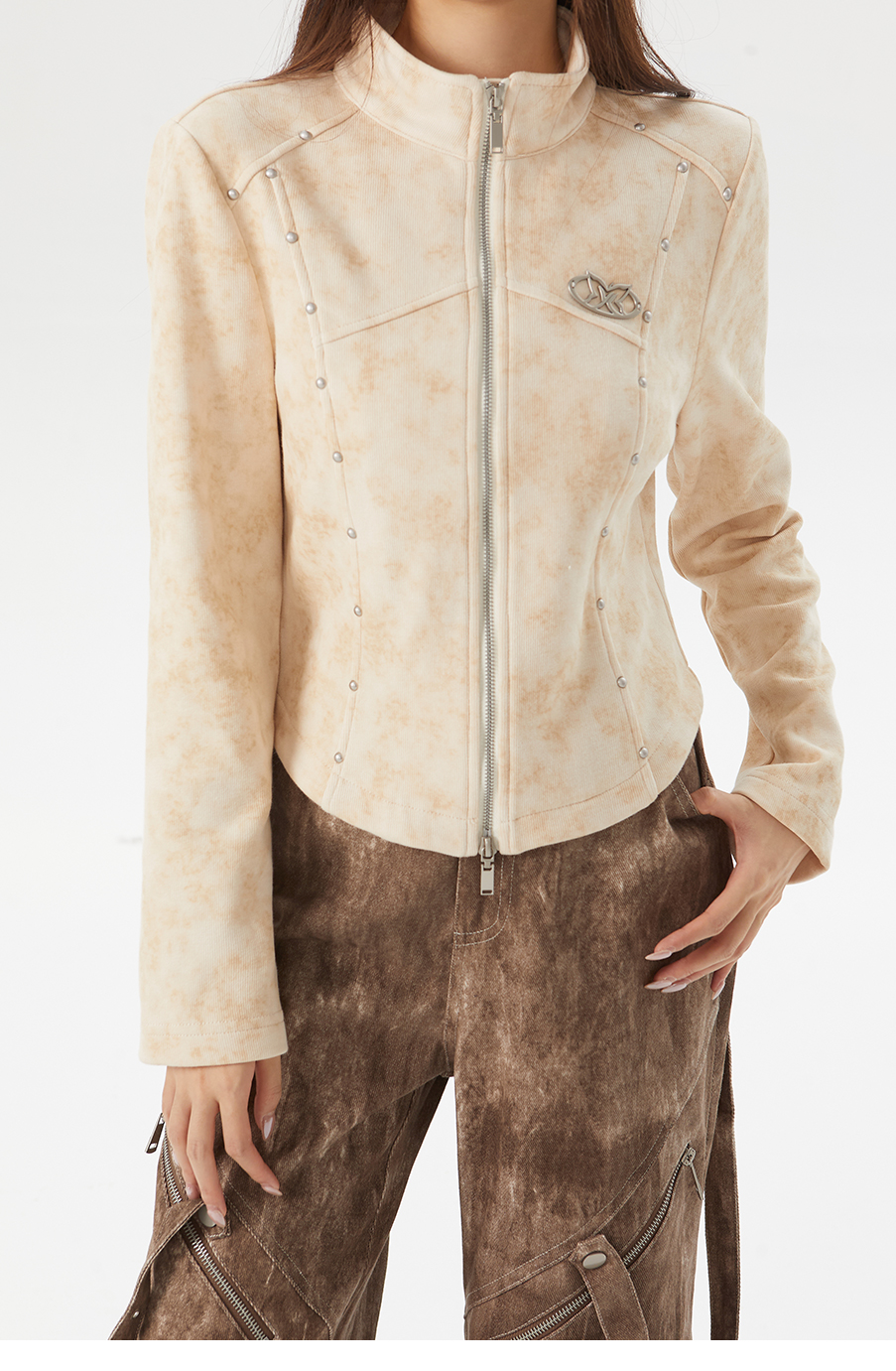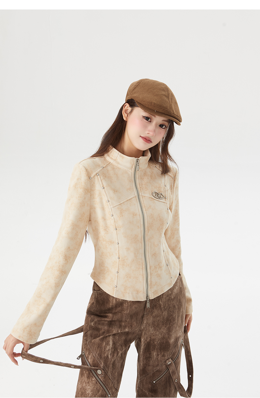 P&X设计师女装春季新款半拉链设计短款毛衣825118174 杏色