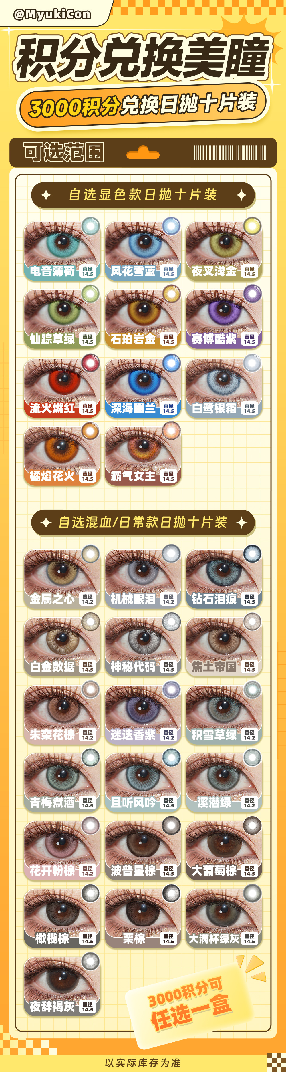 3000积分兑换自选日抛十片装一盒(0-800度,无525/575)
