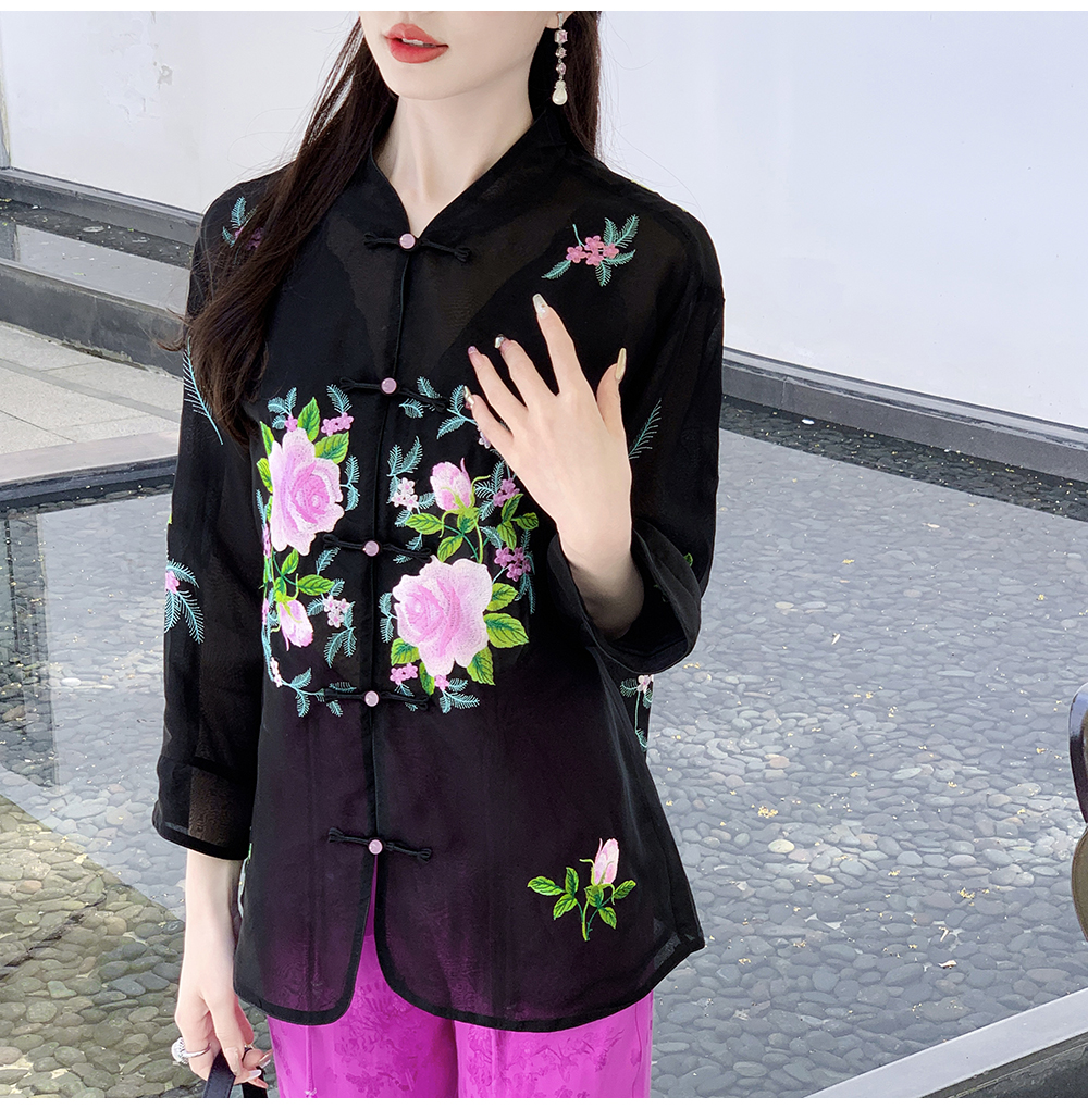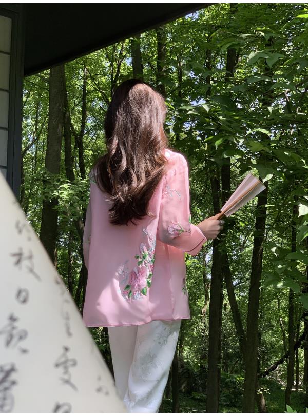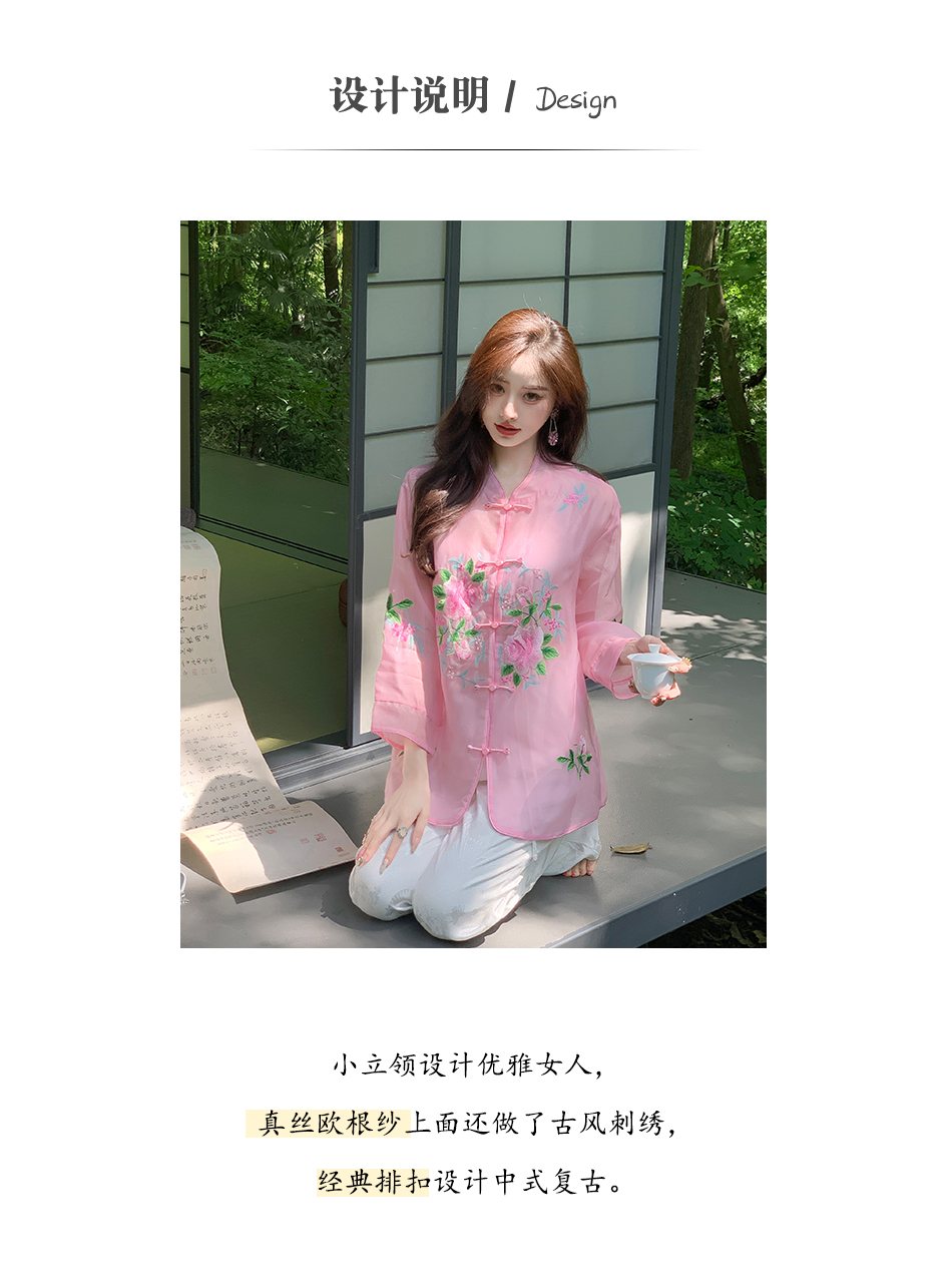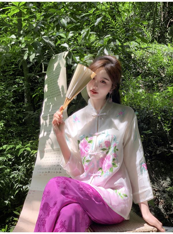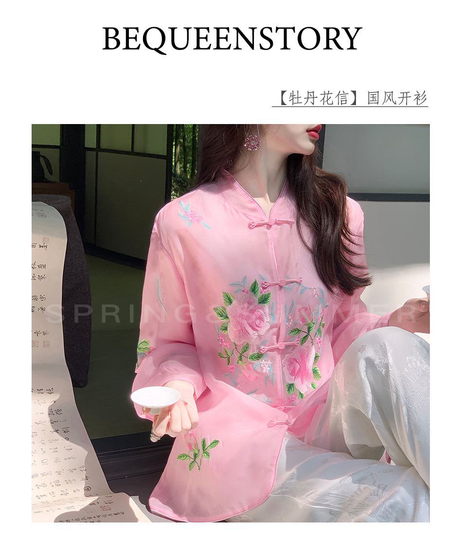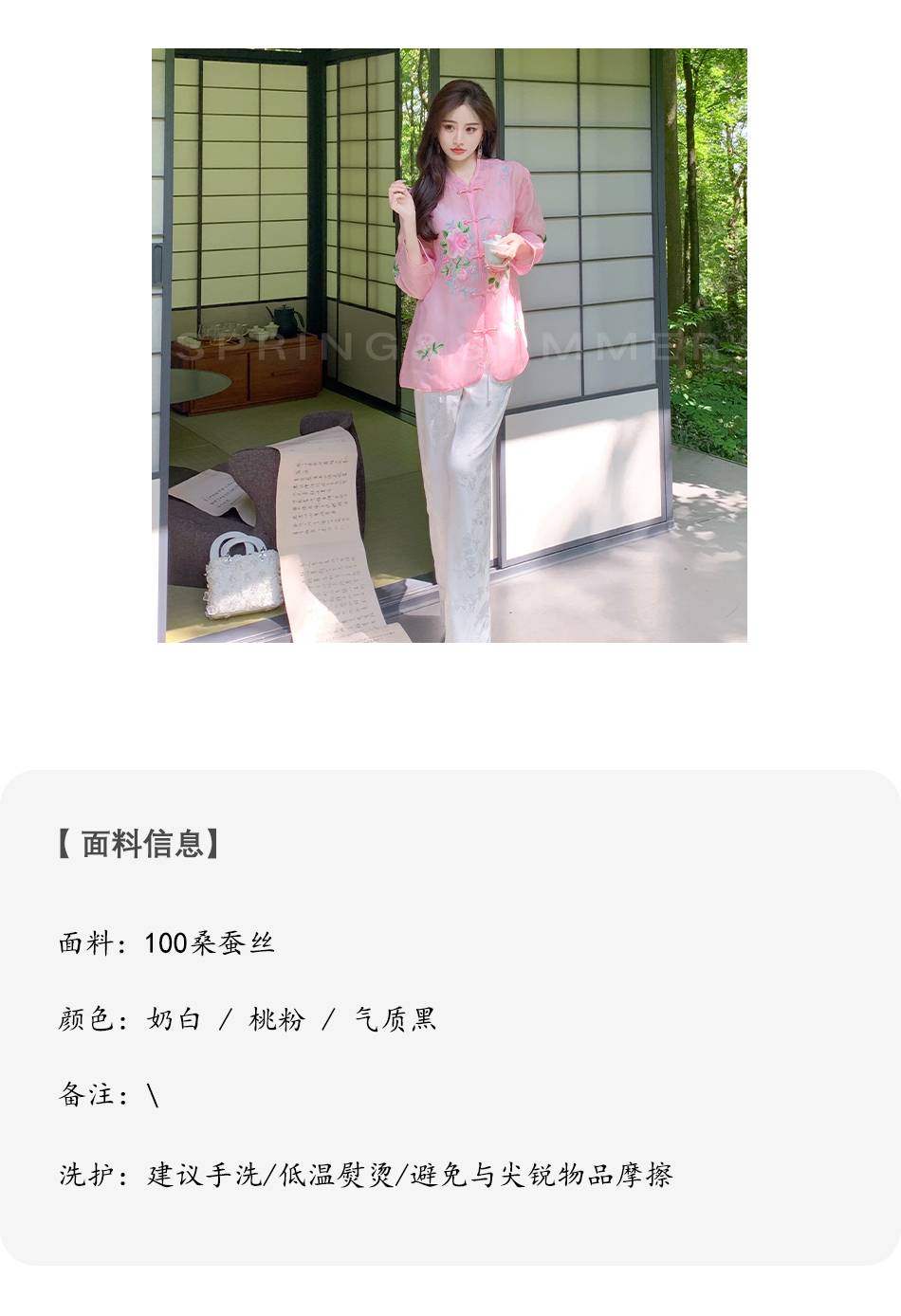【孤品样衣,不退不换】【人间富贵花】新中式100桑蚕丝刺绣衬衫夏新款