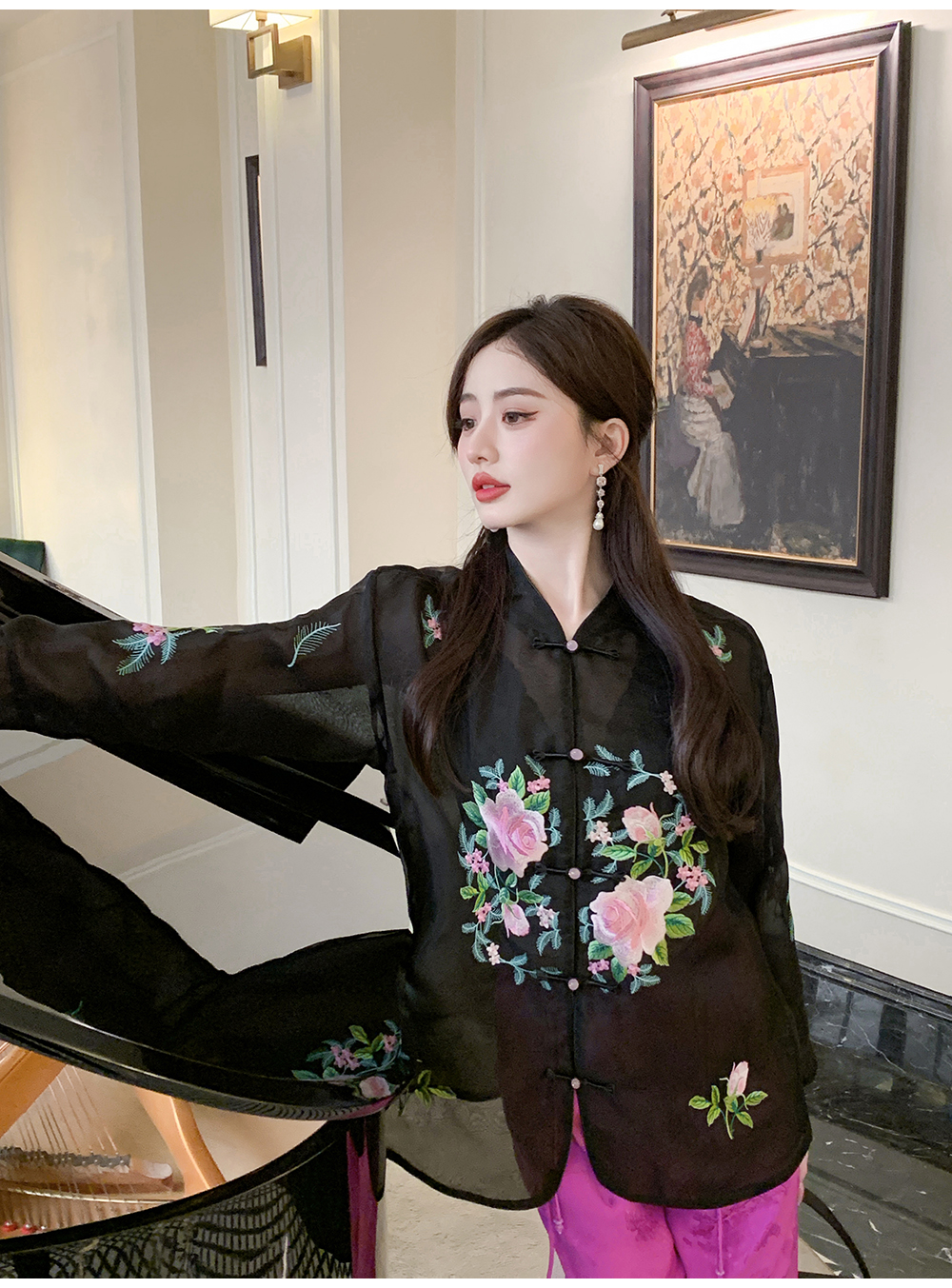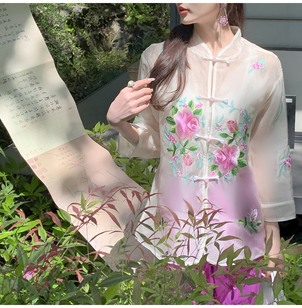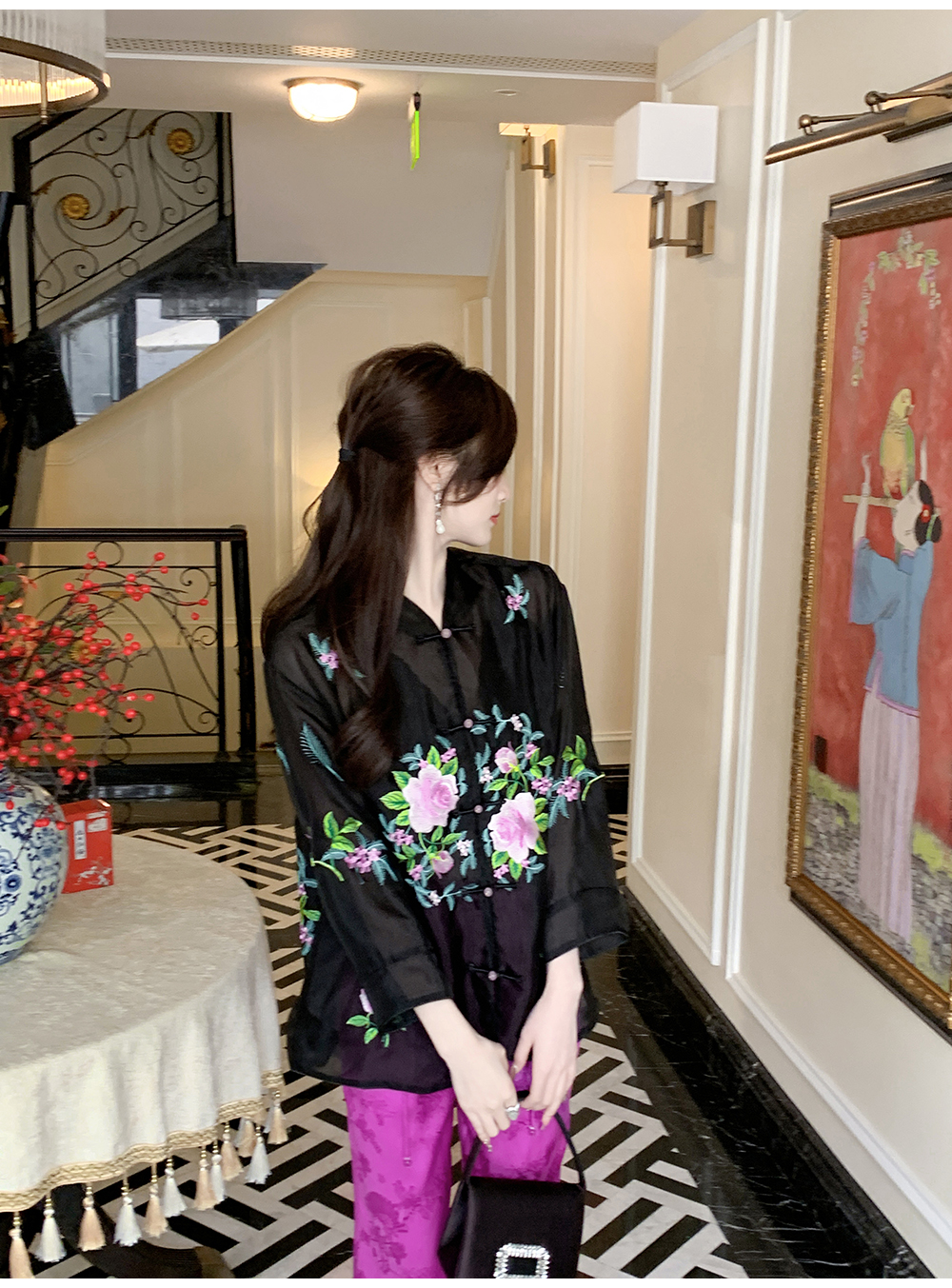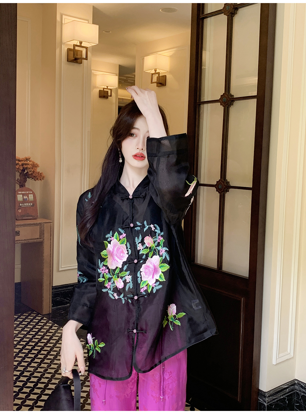 【孤品样衣,不退不换】【人间富贵花】新中式100桑蚕丝刺绣衬衫夏新款