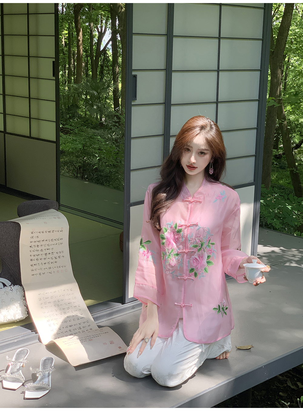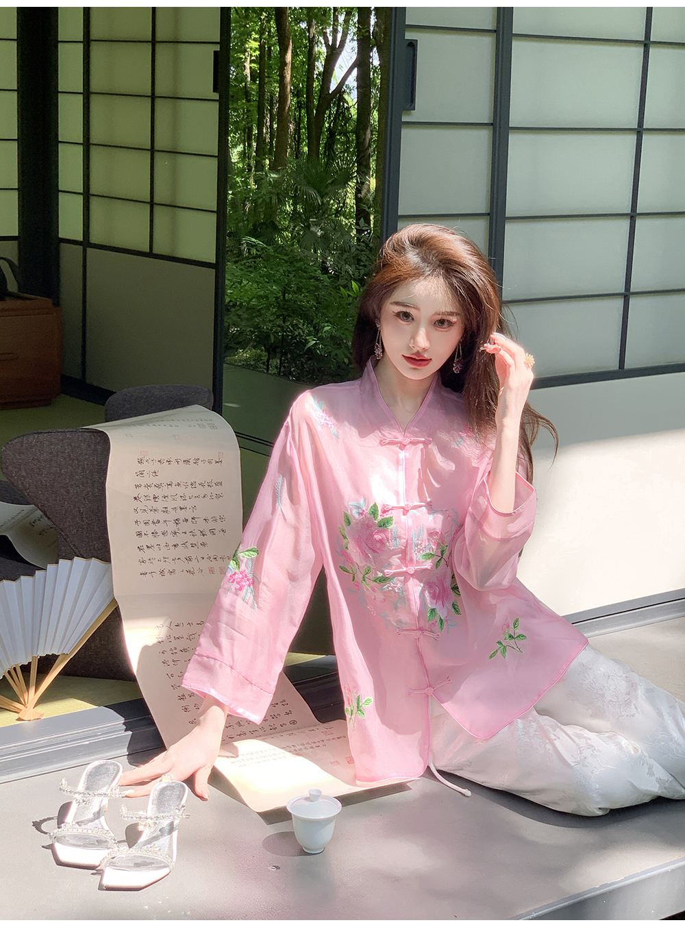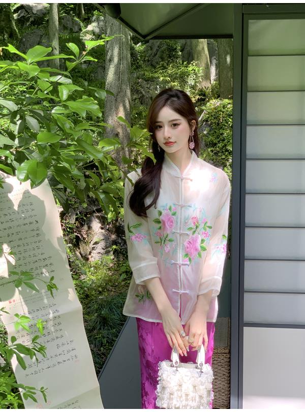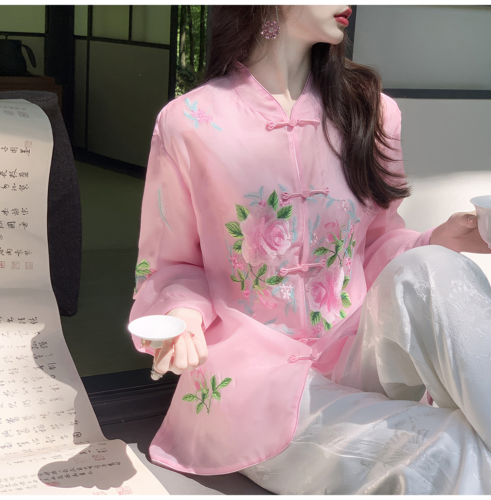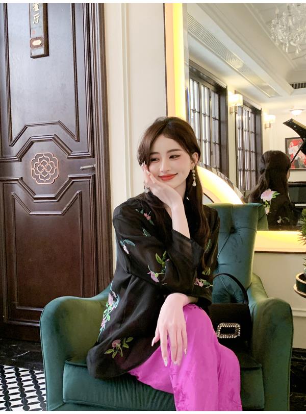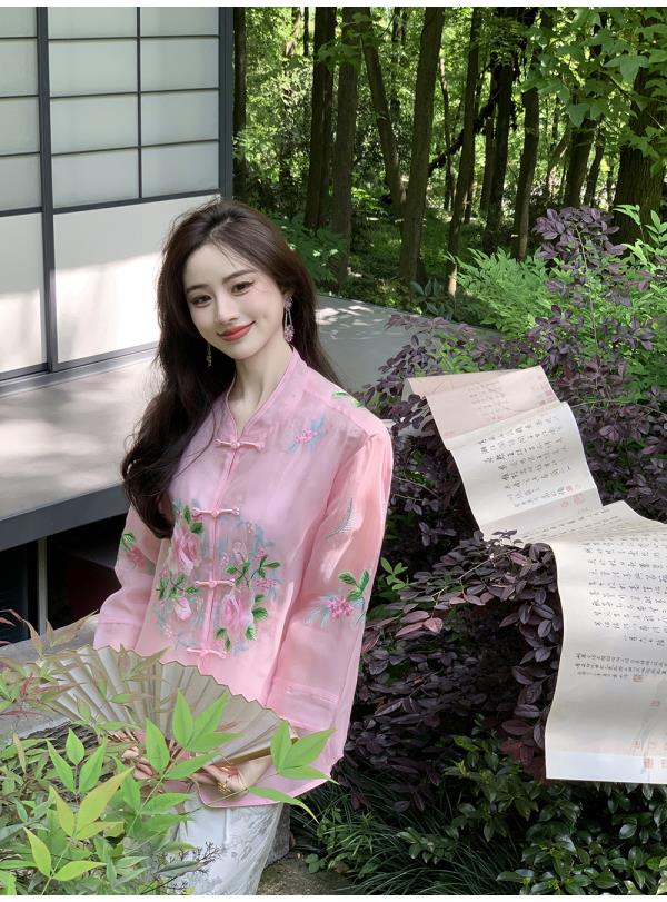 【孤品样衣,不退不换】【人间富贵花】新中式100桑蚕丝刺绣衬衫夏新款
