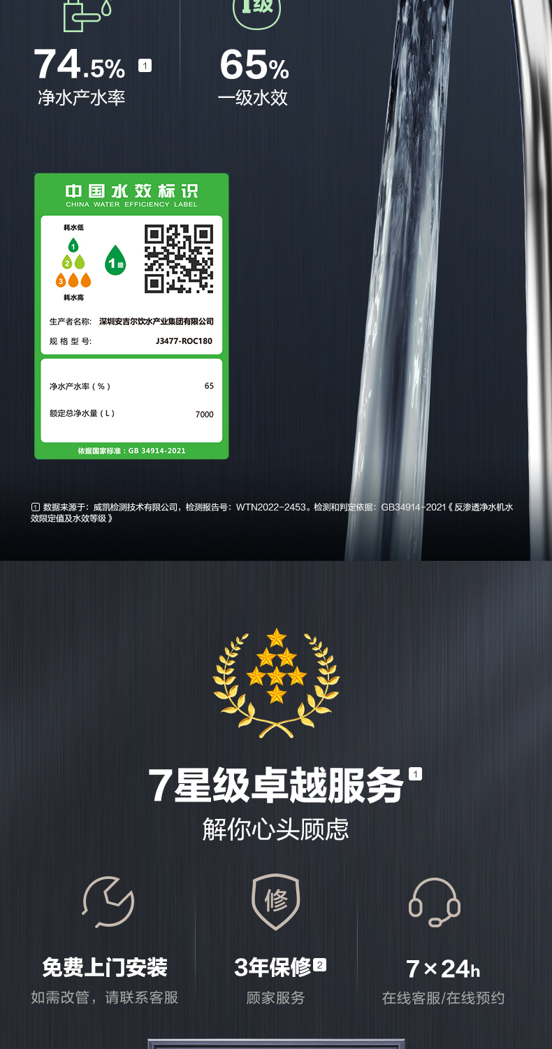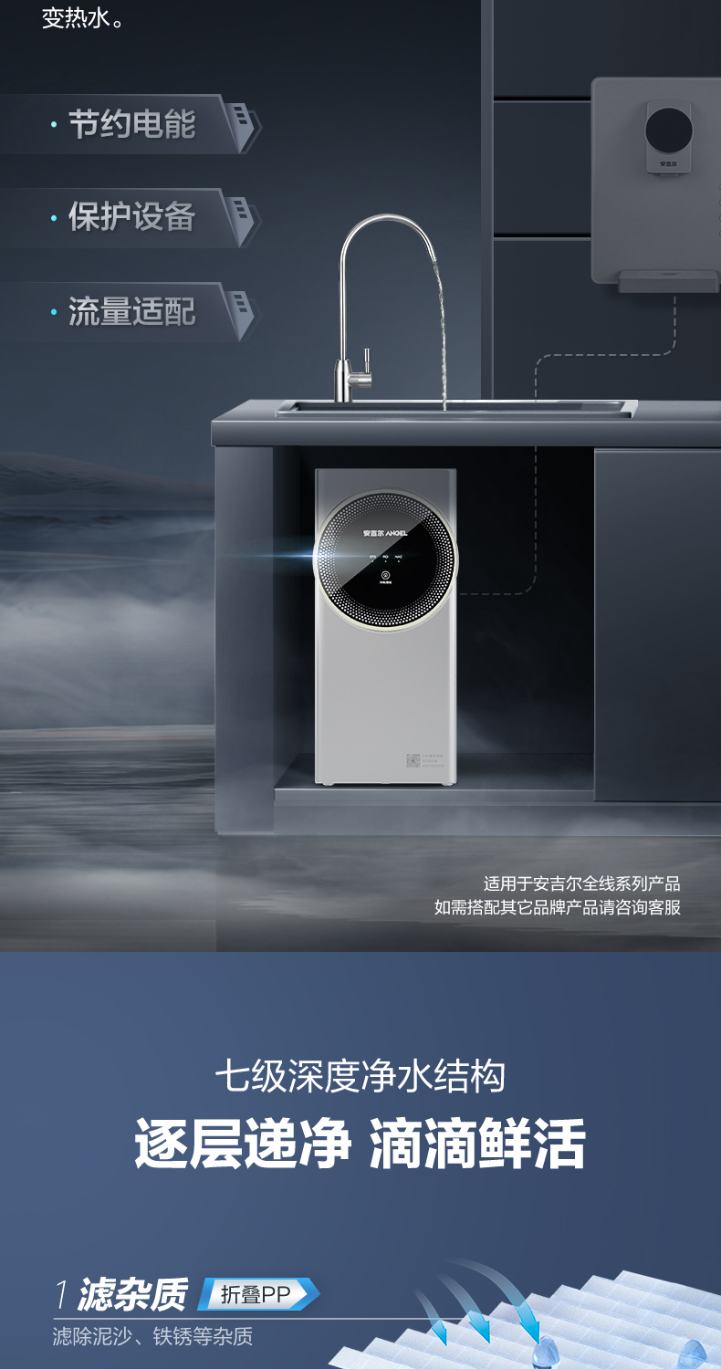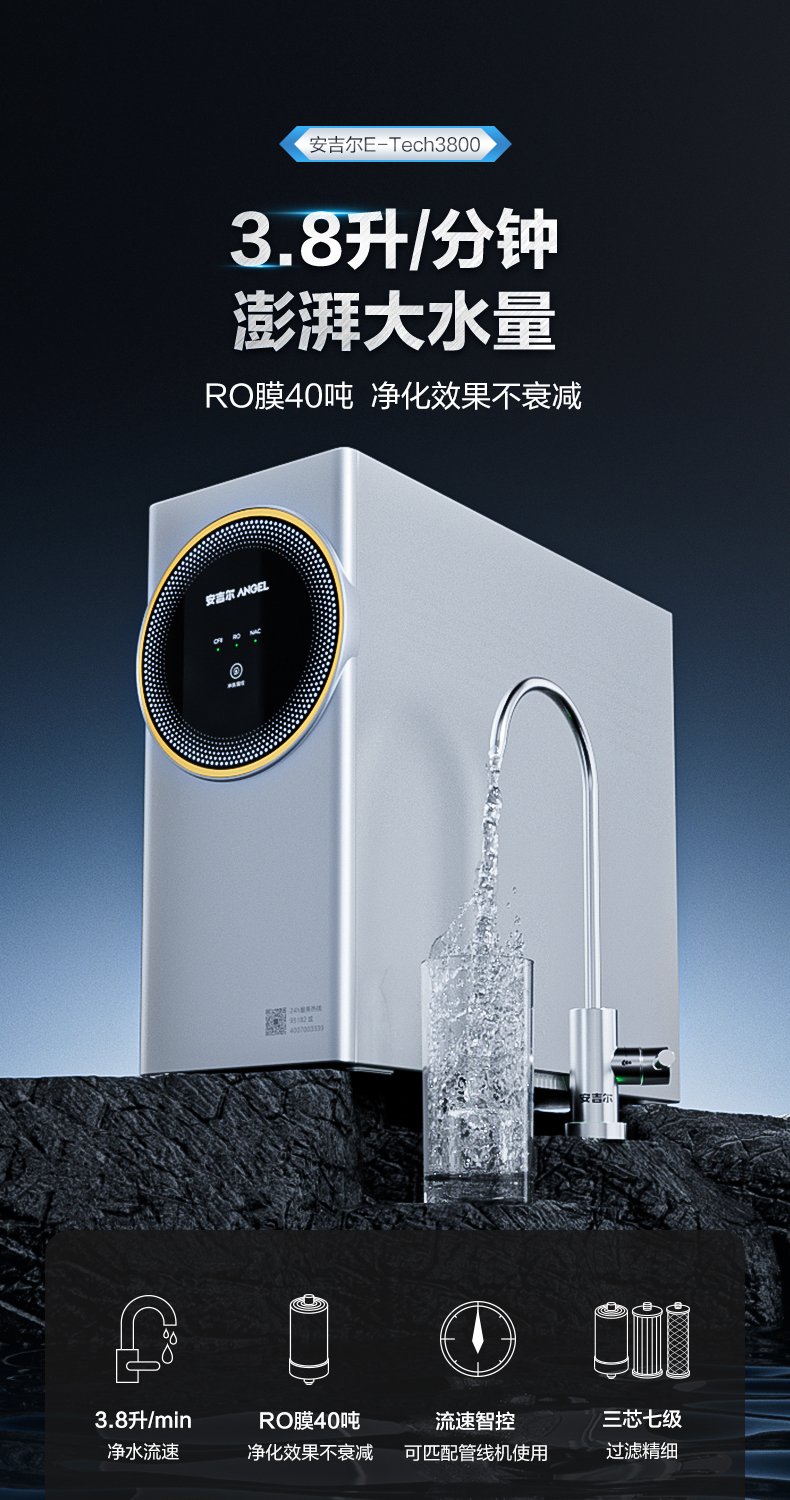 安吉尔E-Tech3800 净水器反渗透RO膜家用直饮