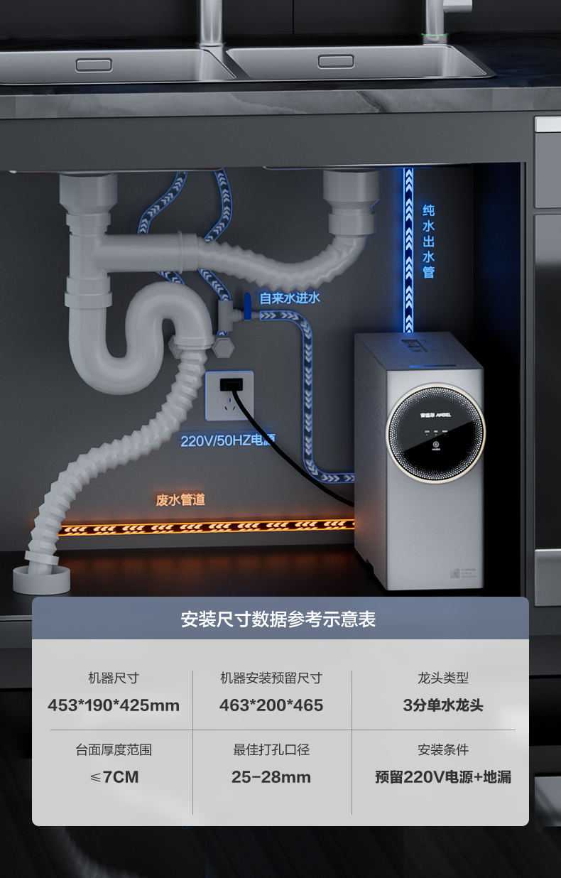 安吉尔哪吒Pro2900 净水器家用直饮机RO反渗透