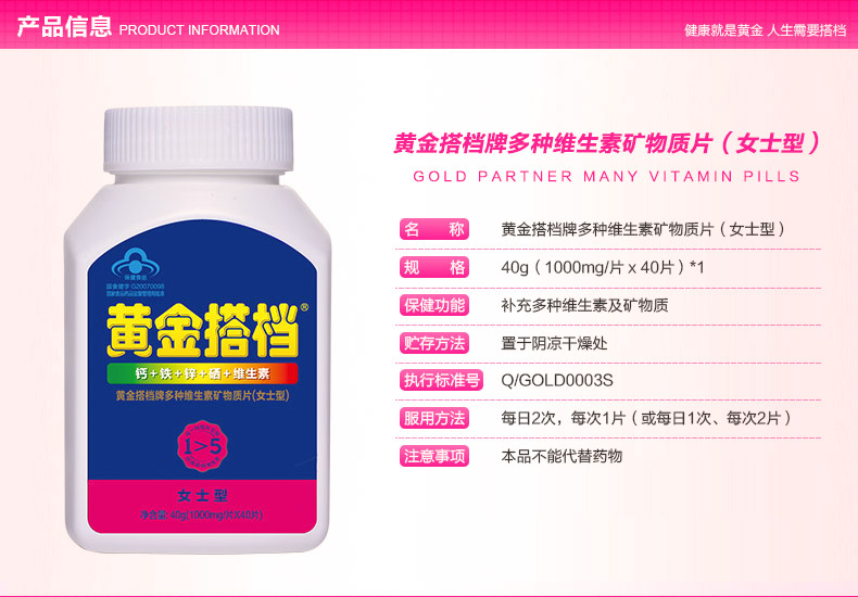 (健康币兑换)黄金搭档女士型1000mg*40片
