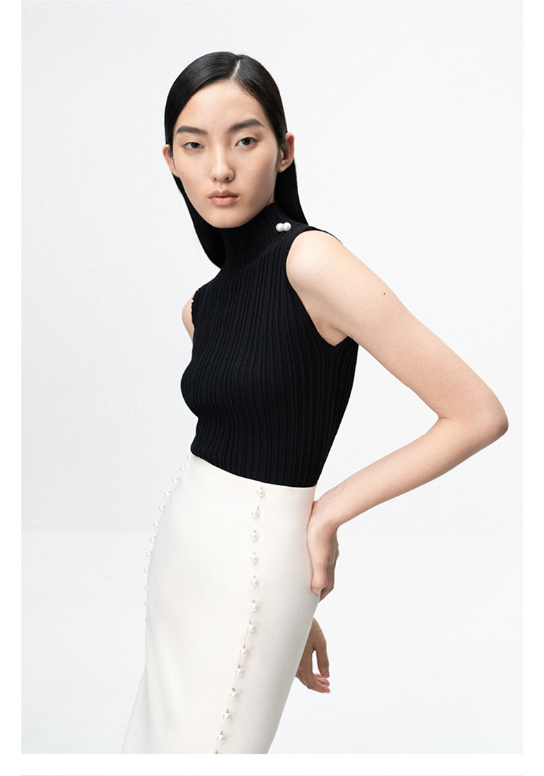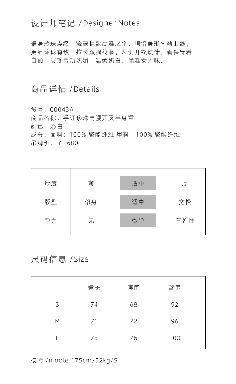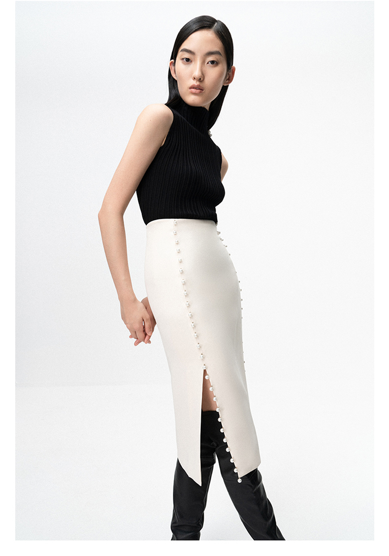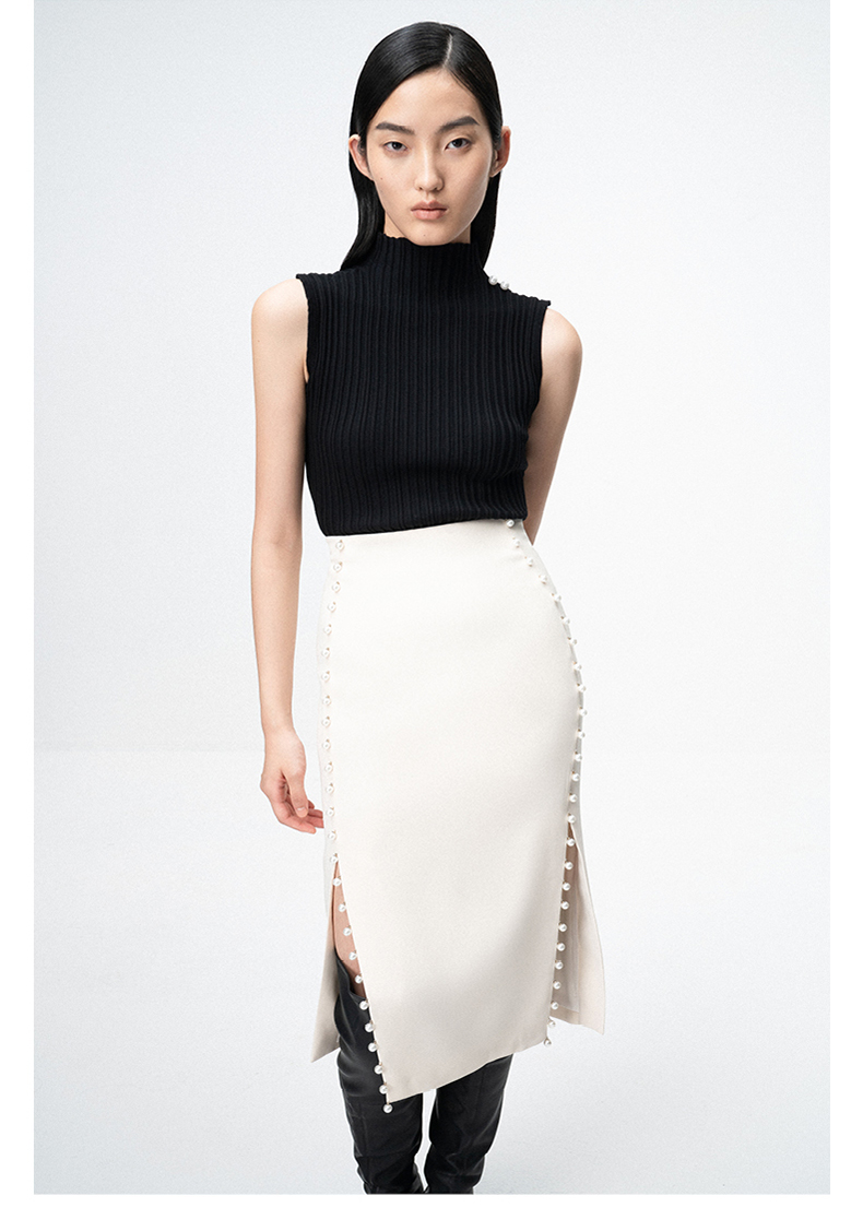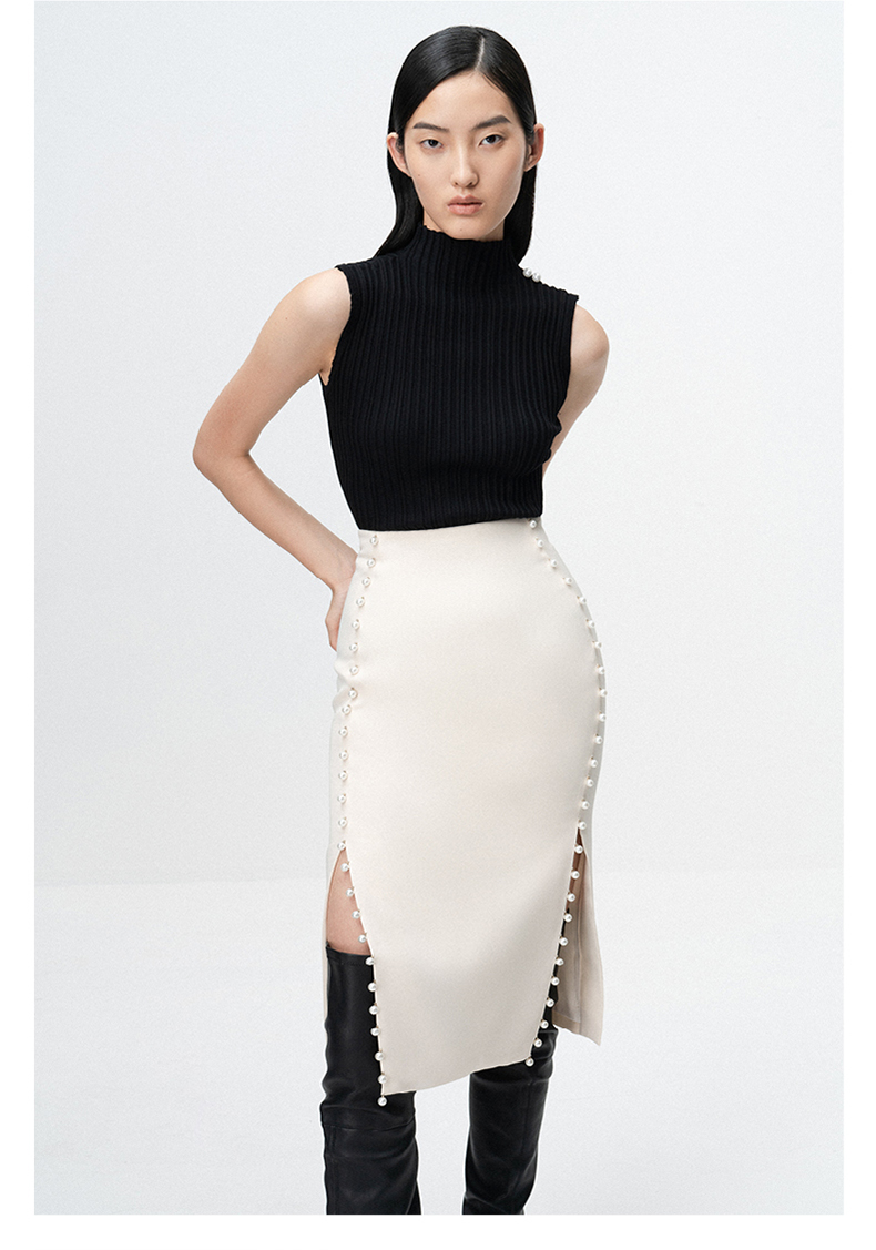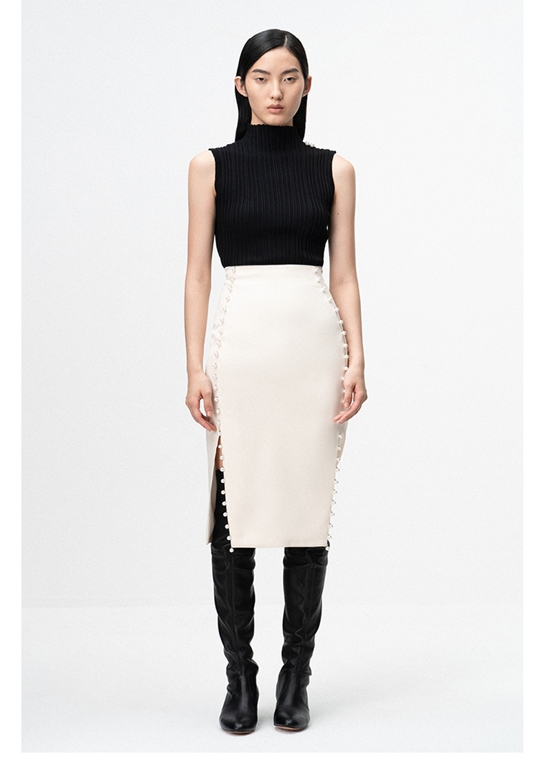 AtelierMissLu / Elma 白色珍珠开衩半身裙