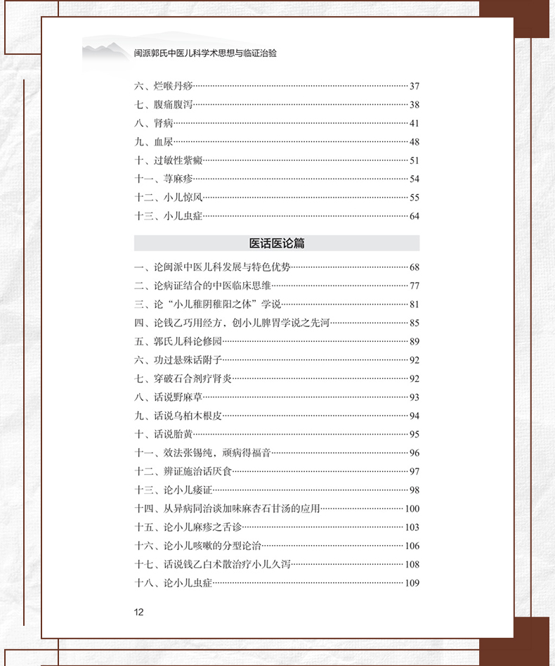 本书以闽医传薪为主线,以传承创新为发展要旨,以医案医话为为形式,以学术思想和临床经验为重点,突出王著础主任临证思维过程和用药特点,以及对中医理论独特的见解及感悟,具有很强的临床实用性。本书的编写既是对福建中医儿科流派的抢救性、保护性、传承性进行的必要研究的需要,也为促进名老中医的学术思想和临床经验的传承发展,培养和造就新一代的八闽名医的有效措施。 福建中医儿科流派云集,在近代医学史上产生过重大影响,一大批社会公认的中医儿科流派都曾名噪一时,独树一帜,特色突出,疗效显著,郭氏中医儿科是闽派中医儿科的重要学术流派,共同促进了近代中医药学术的繁荣和临床优势的发挥。
