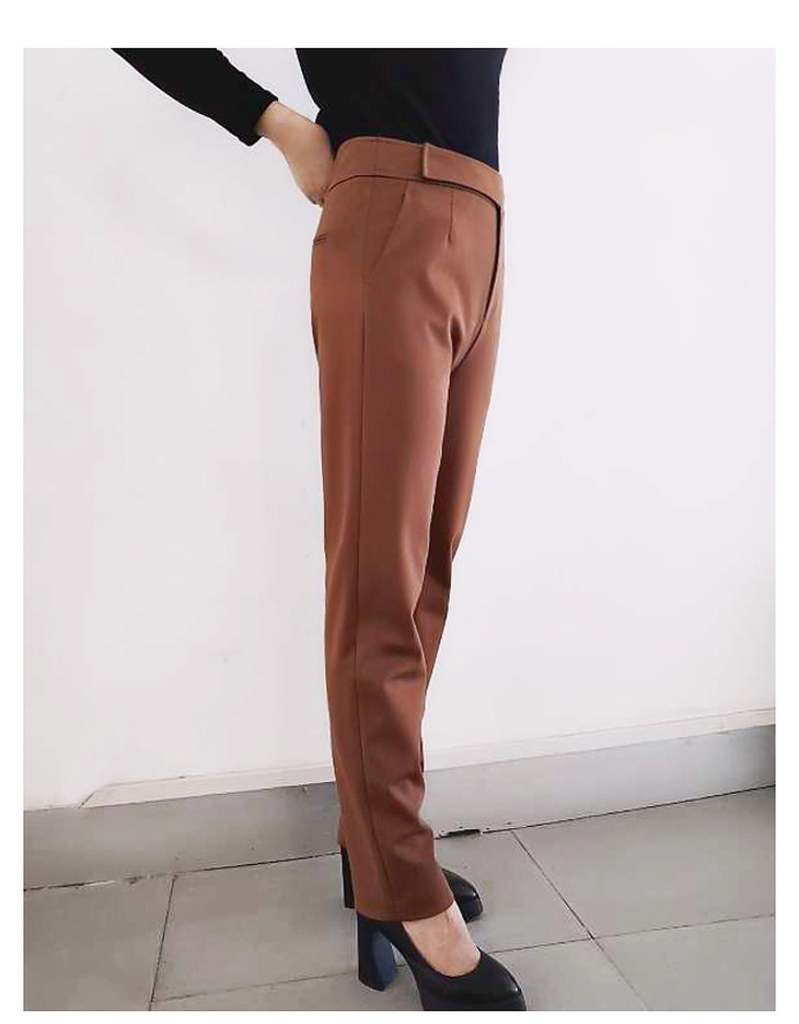 【福利款不退换】阿菁娜秋款驼色休闲裤直筒显瘦长裤A22Q110017