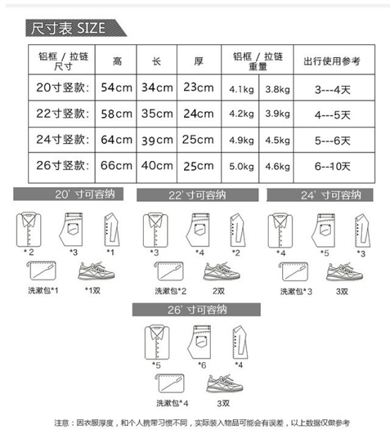 🔺20、22、24、26寸,多种尺寸可选!听我一句劝,行李箱还是要选抗造能装的!