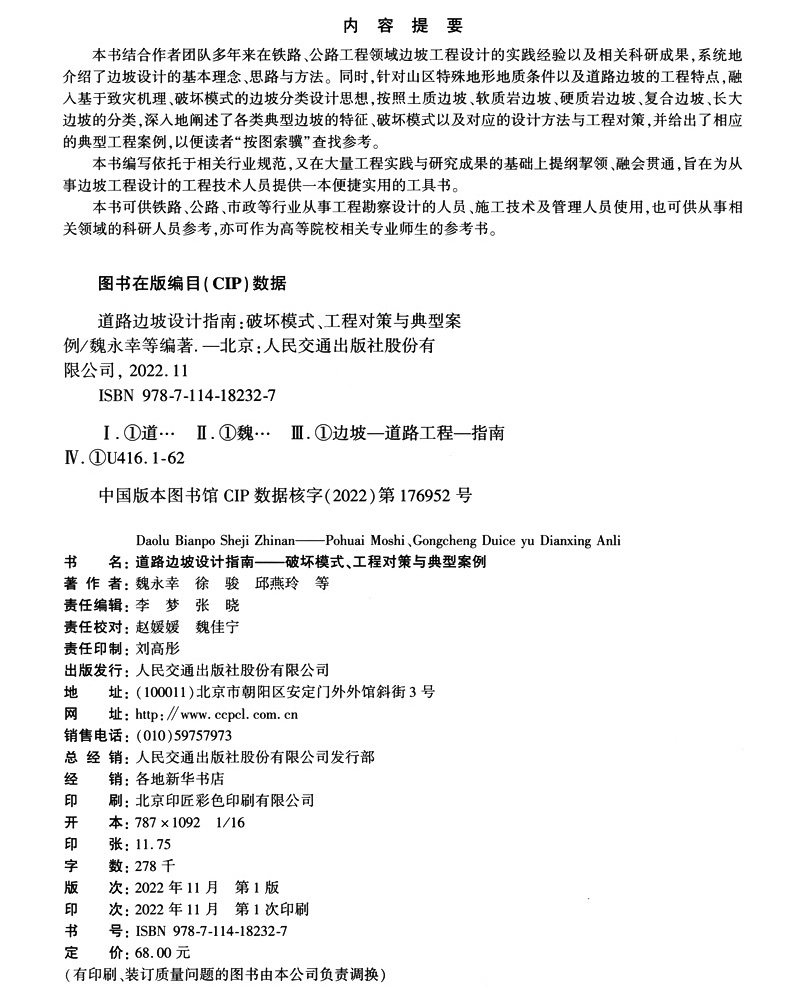 书名:道路边坡设计指南——破坏模式、工程对策与典型案例