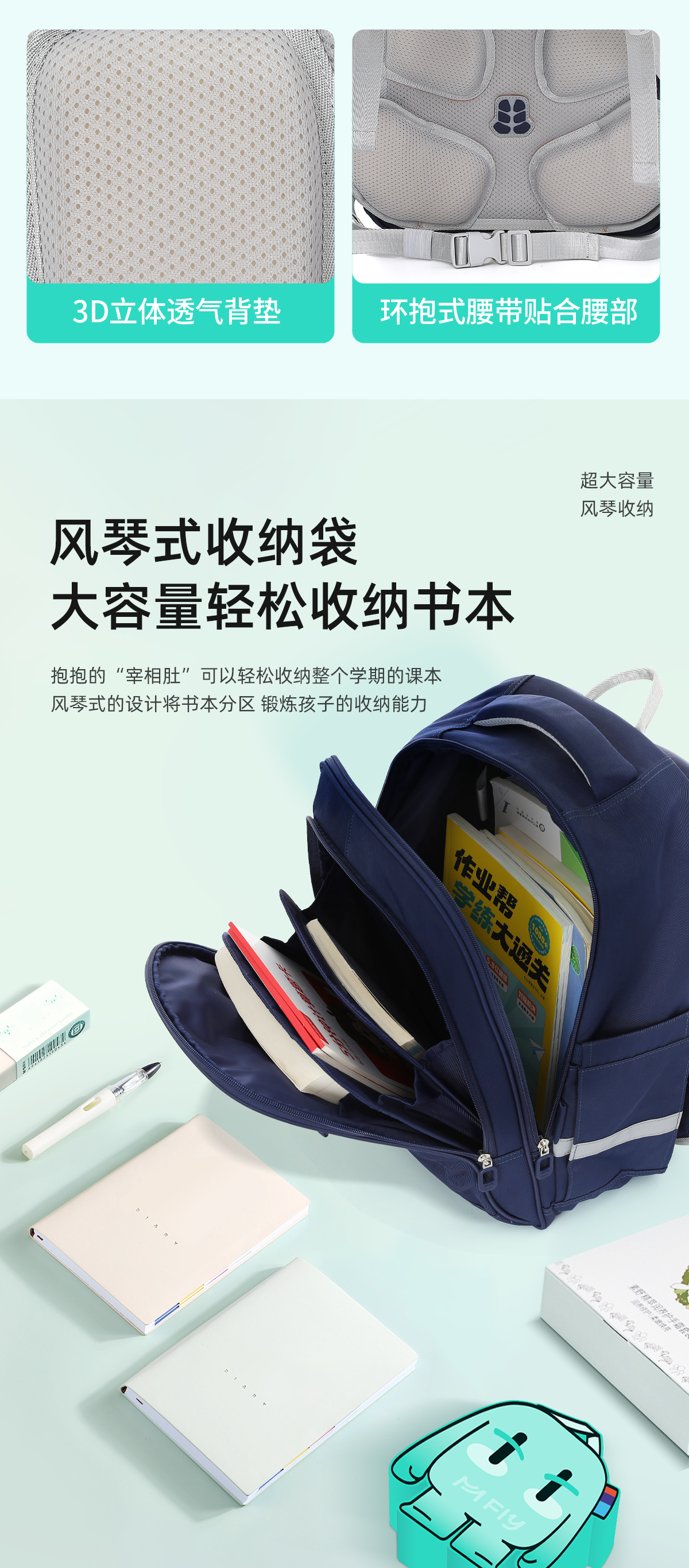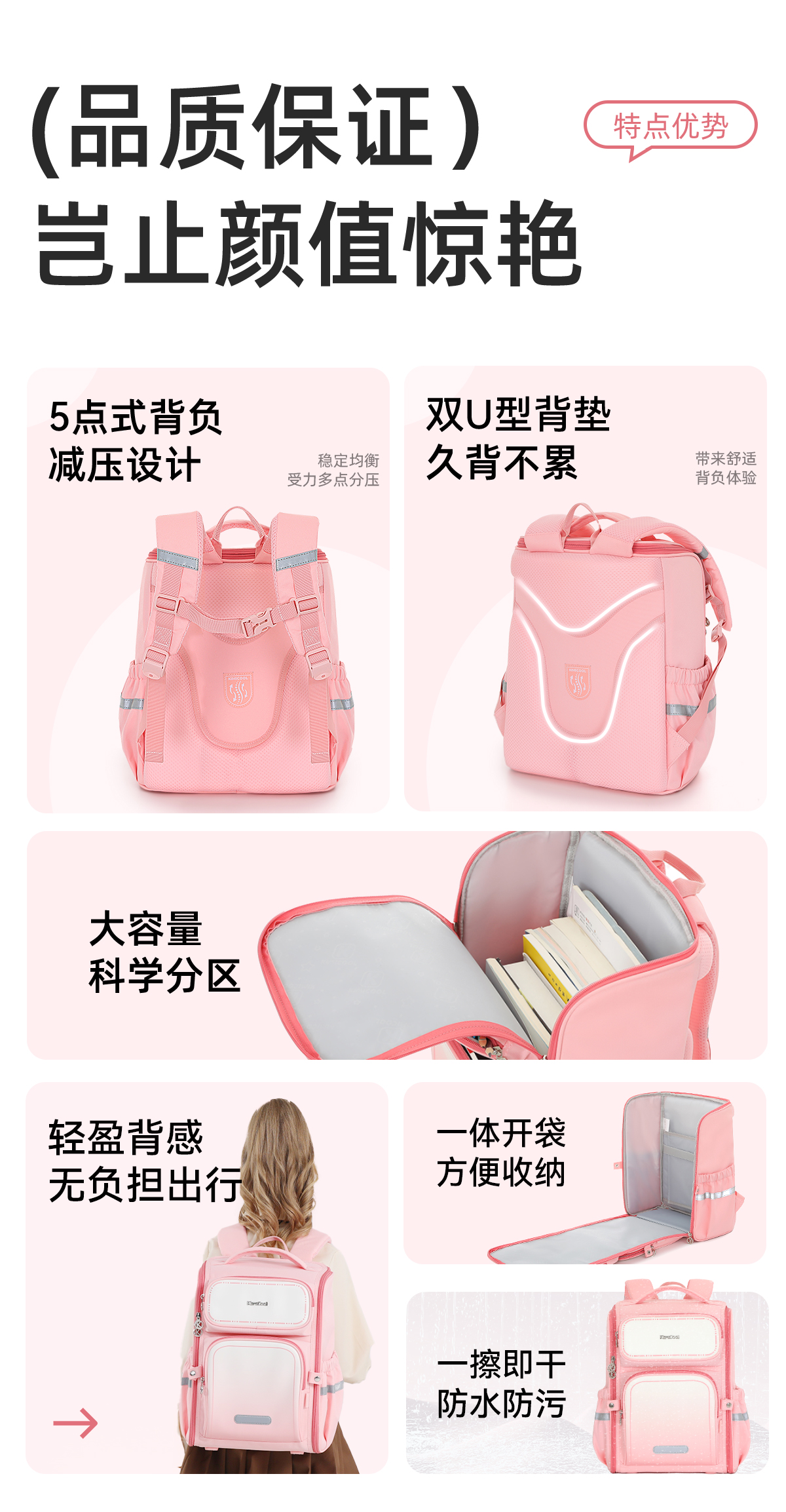 【开学季】KVG品牌 护脊超轻儿童书包 大容量减负双肩包 健康护脊 减压减负 1-6年级