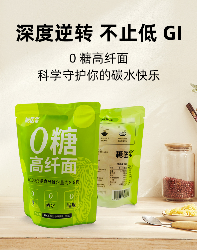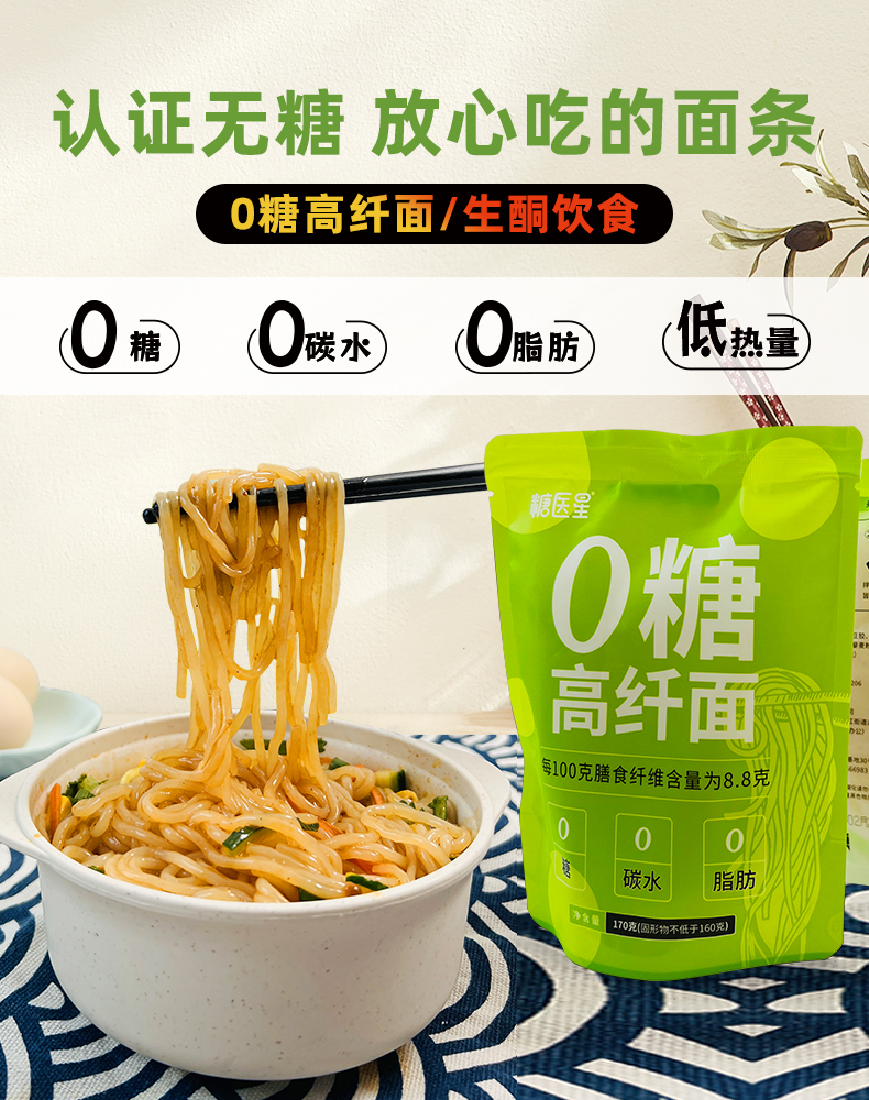 【2份减10元】0糖高纤面 每100克含8.8克膳食纤维 0糖/0脂肪/0碳水化合物 低热量 不节食 饱腹感强 开袋即食 170克/袋