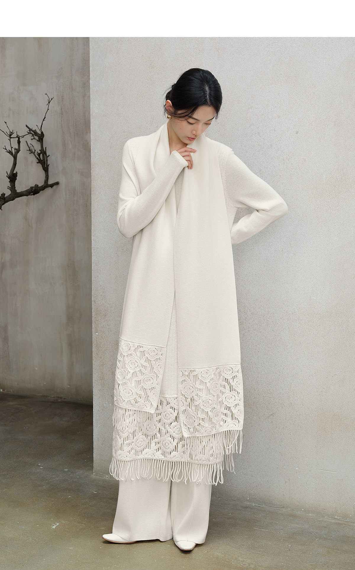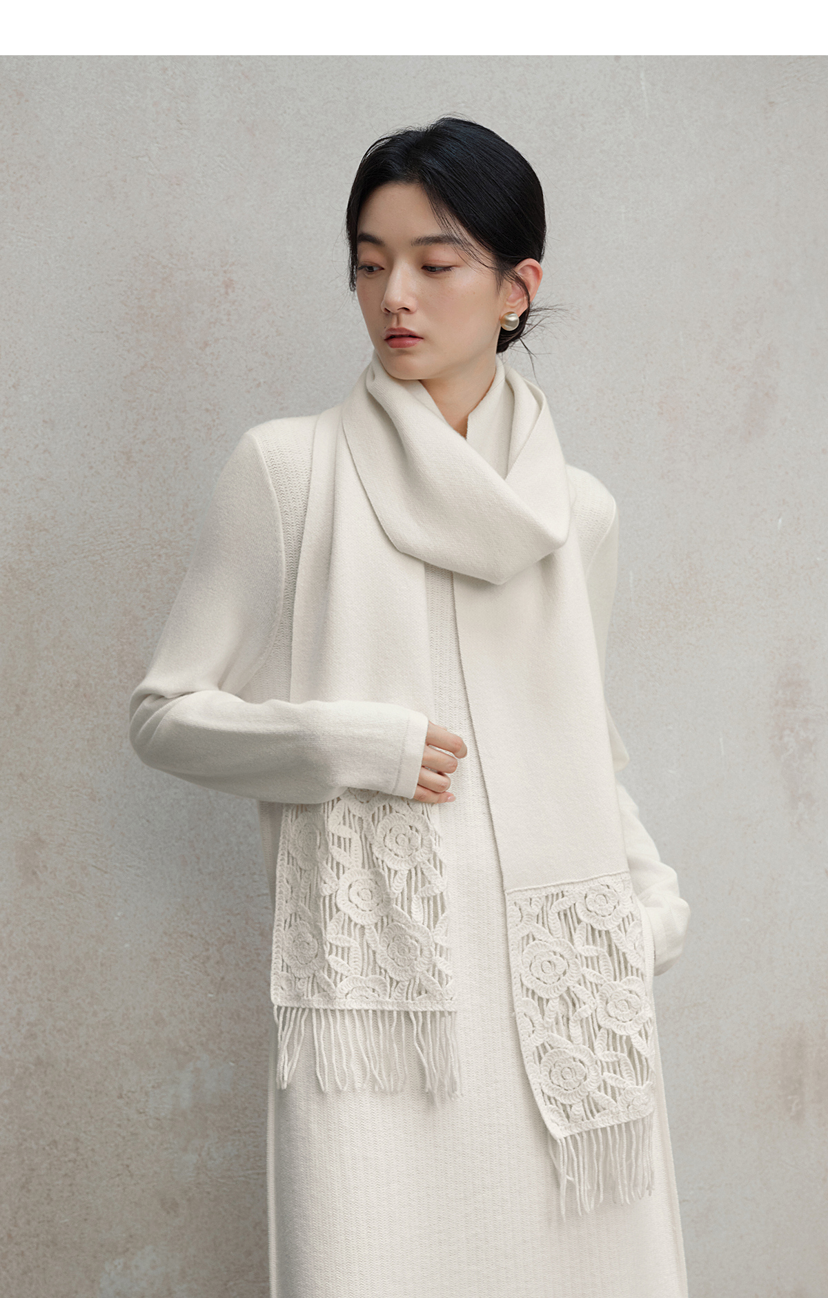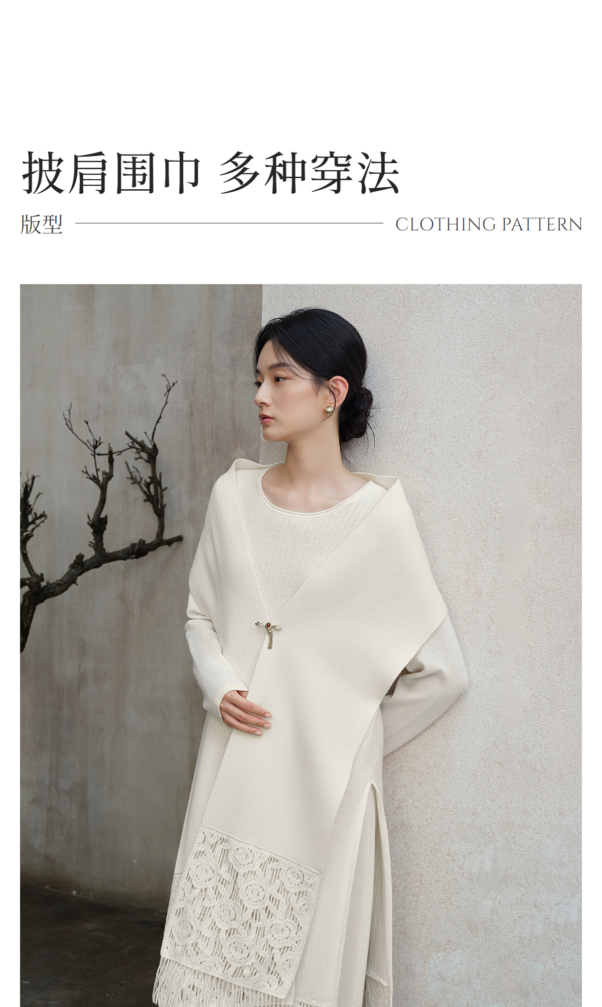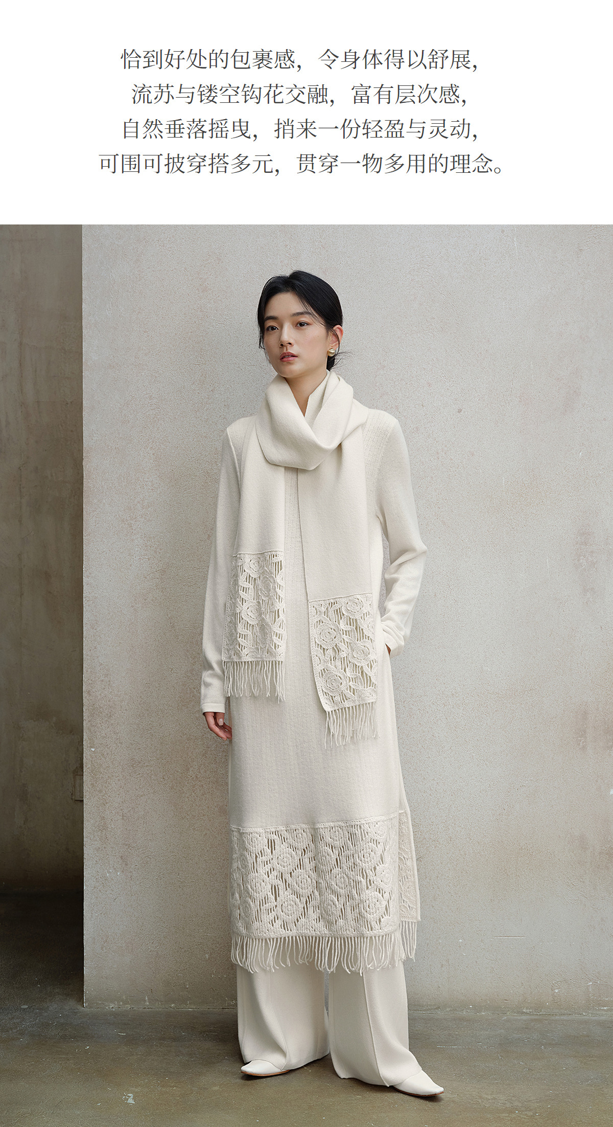 【林栖设计小店】纯白系列绵羊毛毛织围巾保暖镂空新中式2025秋冬新款流苏披肩女2953024