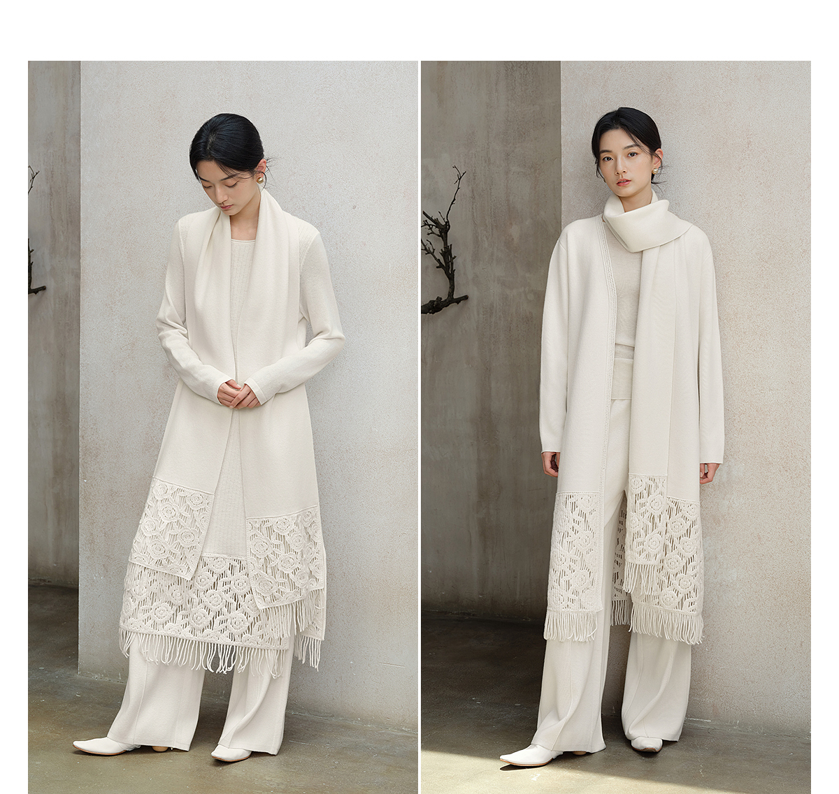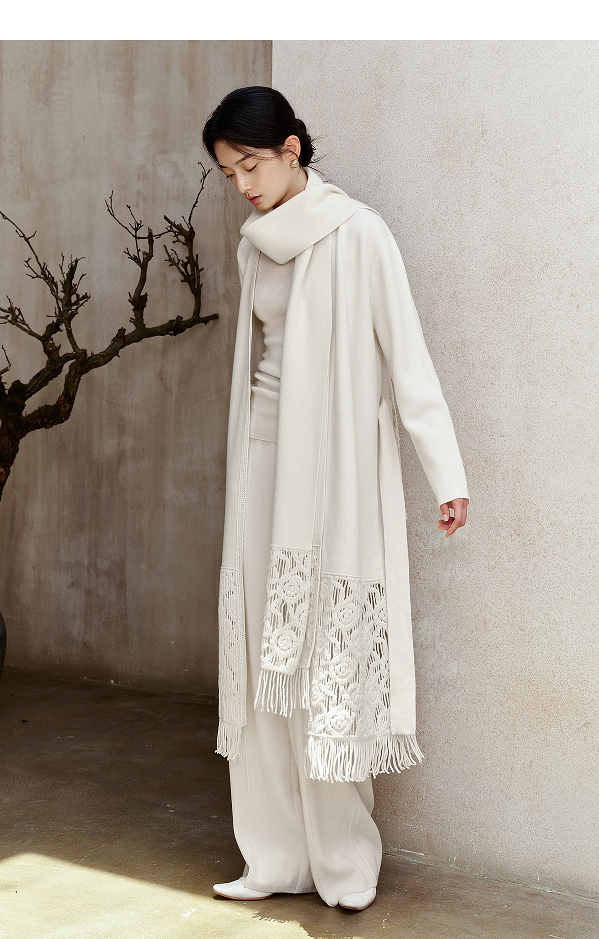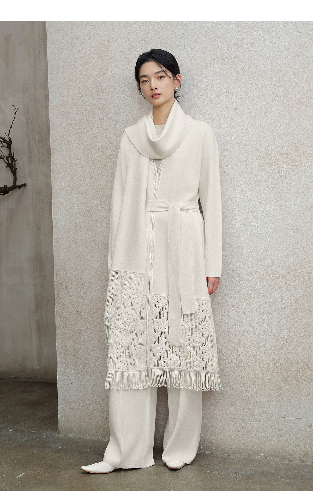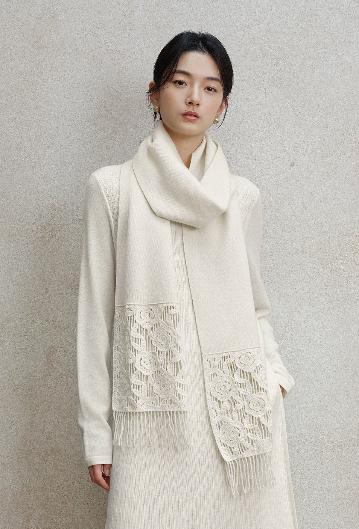 【林栖设计小店】纯白系列绵羊毛毛织围巾保暖镂空新中式2025秋冬新款流苏披肩女2953024