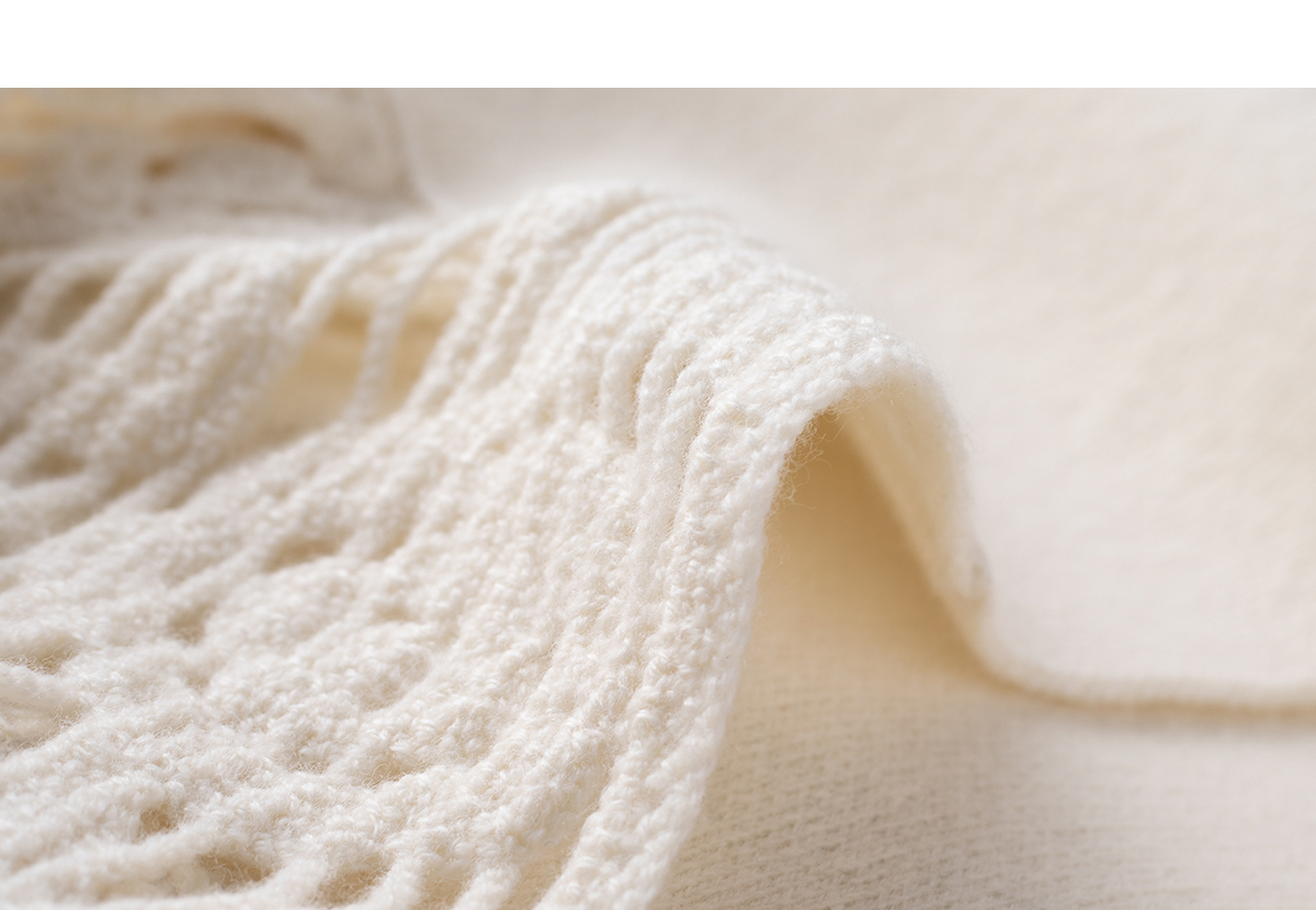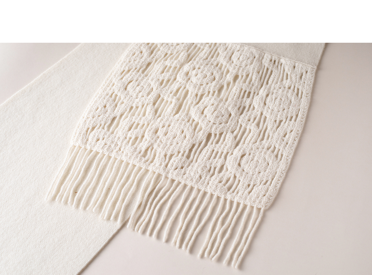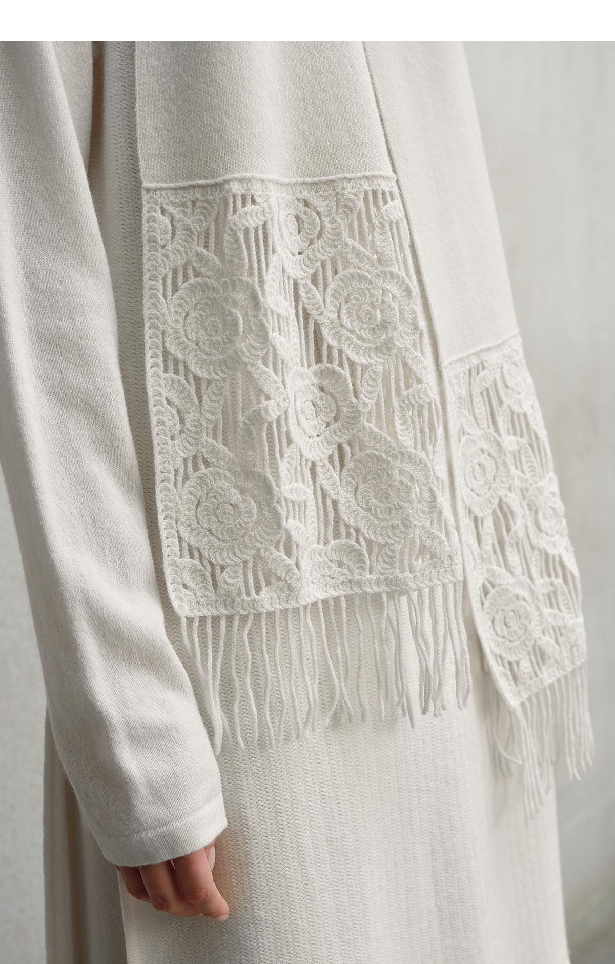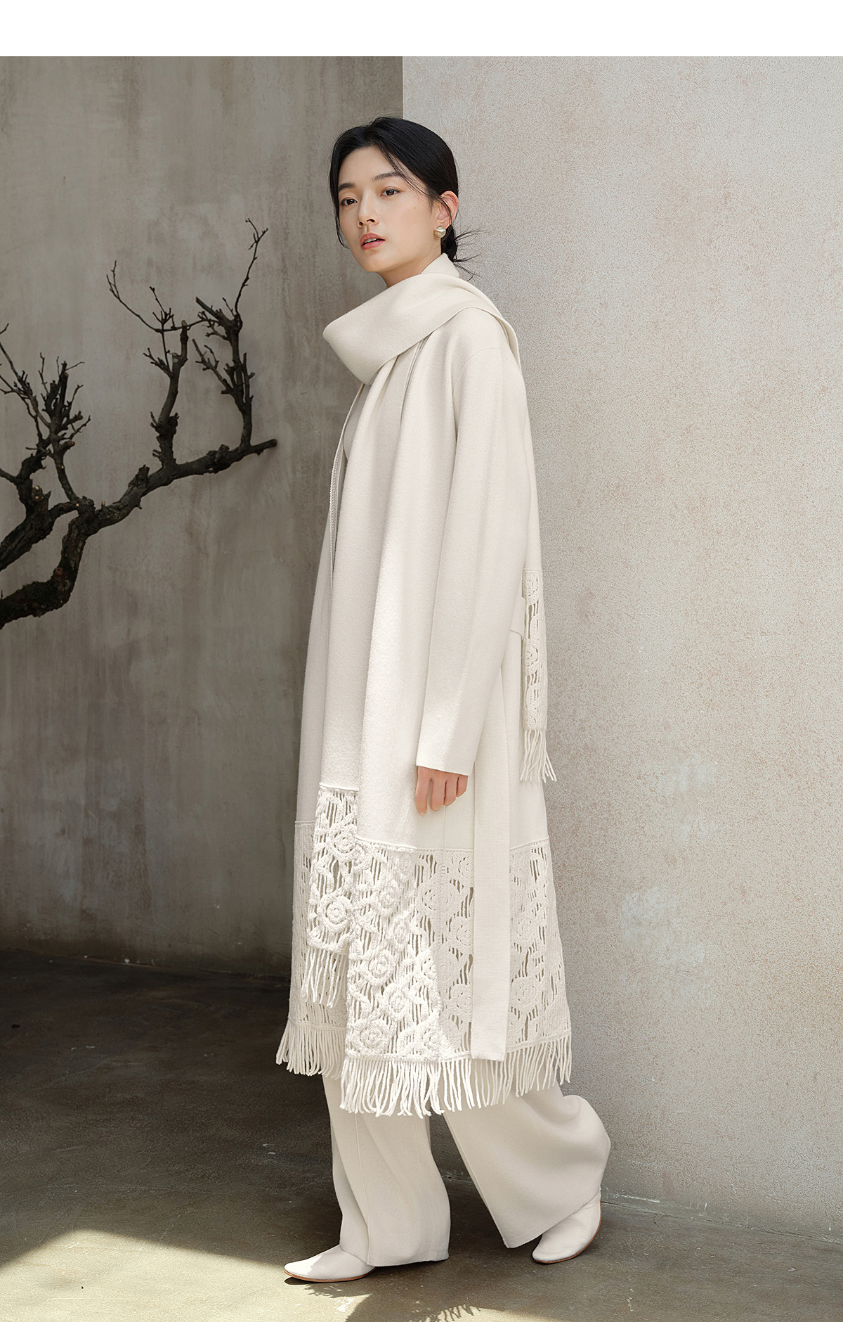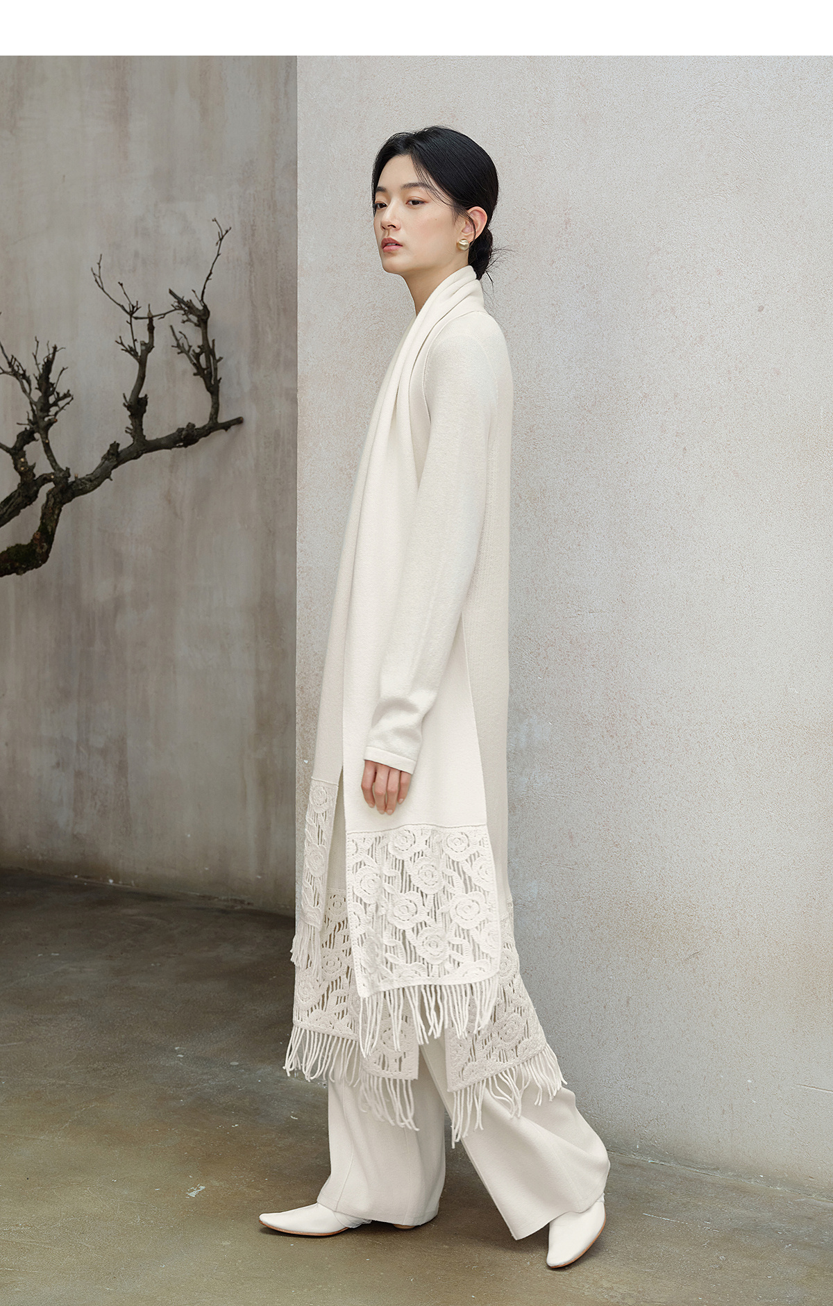 【林栖设计小店】纯白系列绵羊毛毛织围巾保暖镂空新中式2025秋冬新款流苏披肩女2953024