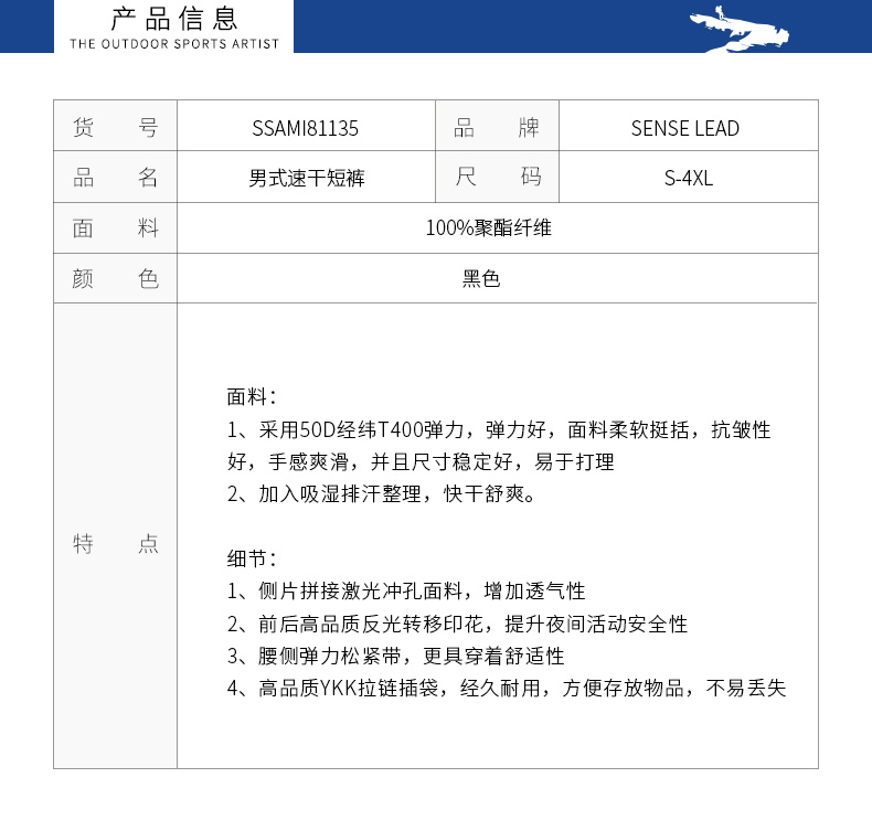 Senselead|男式速干短裤 SSAMI81135