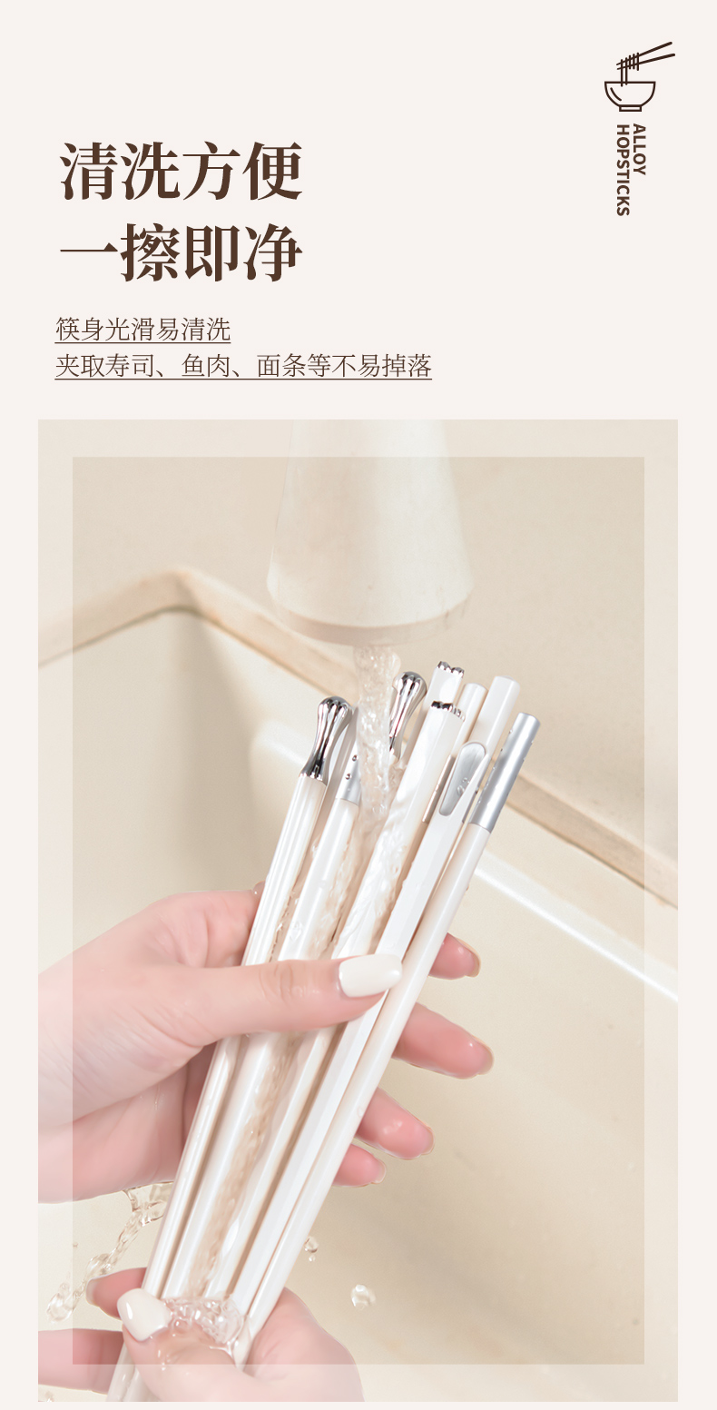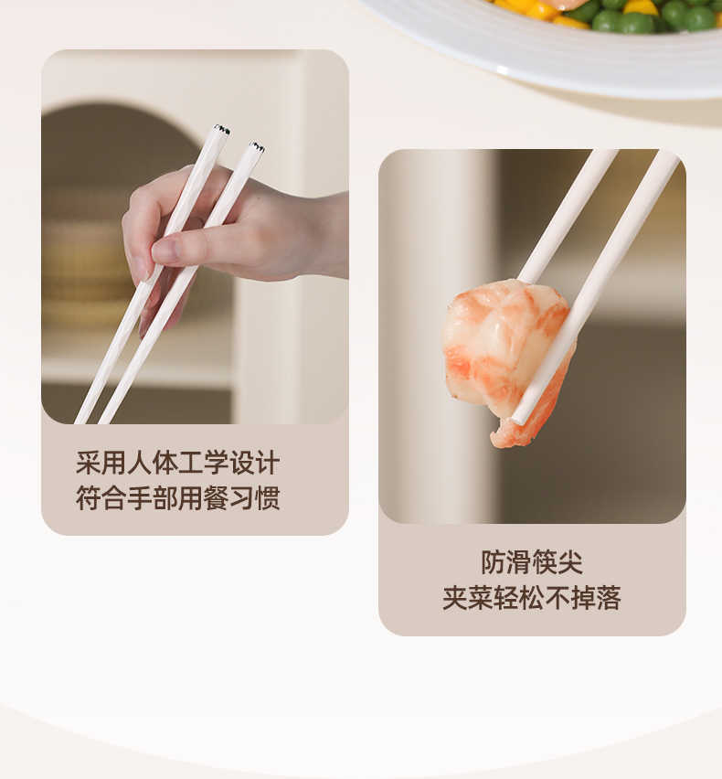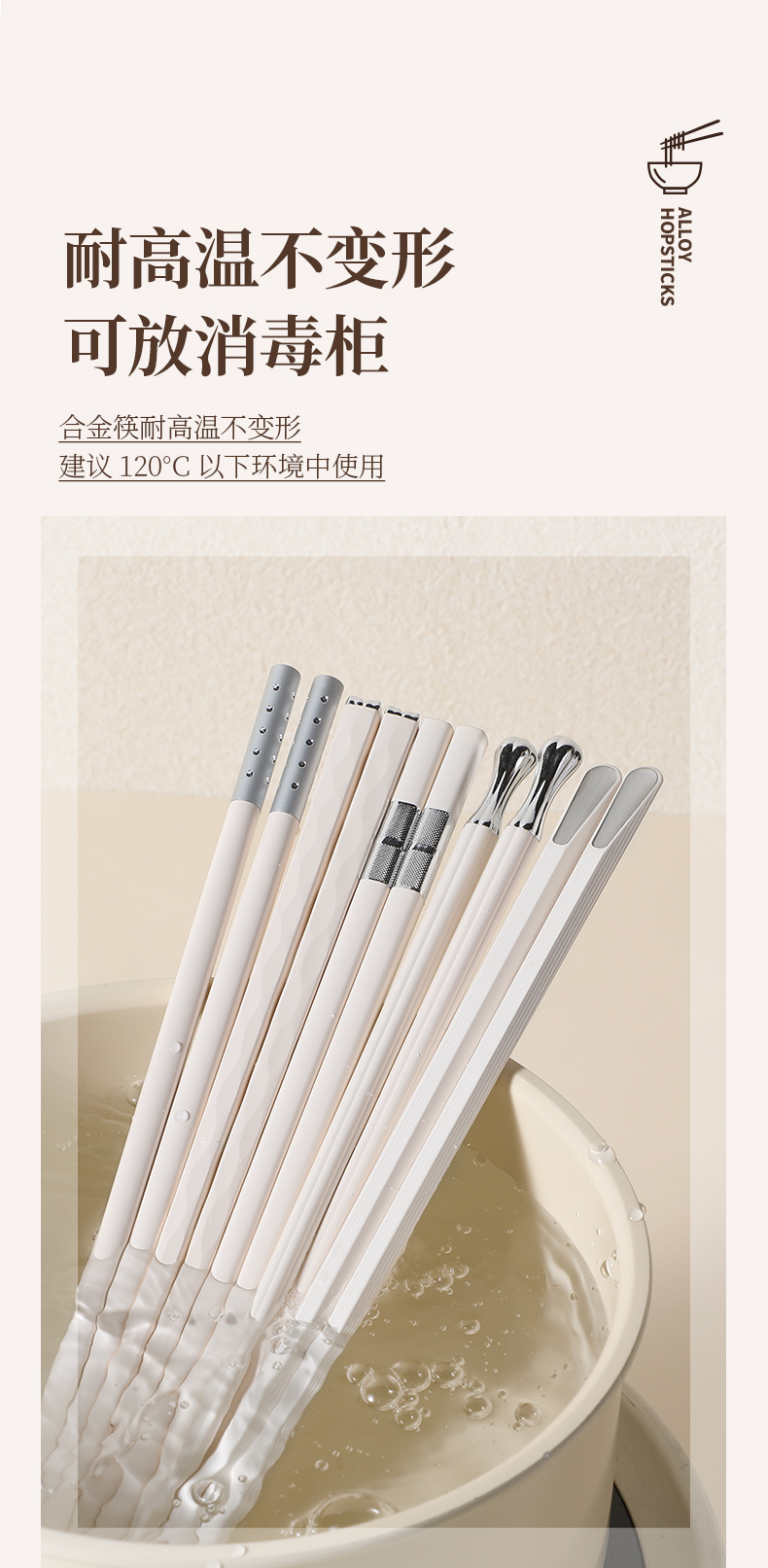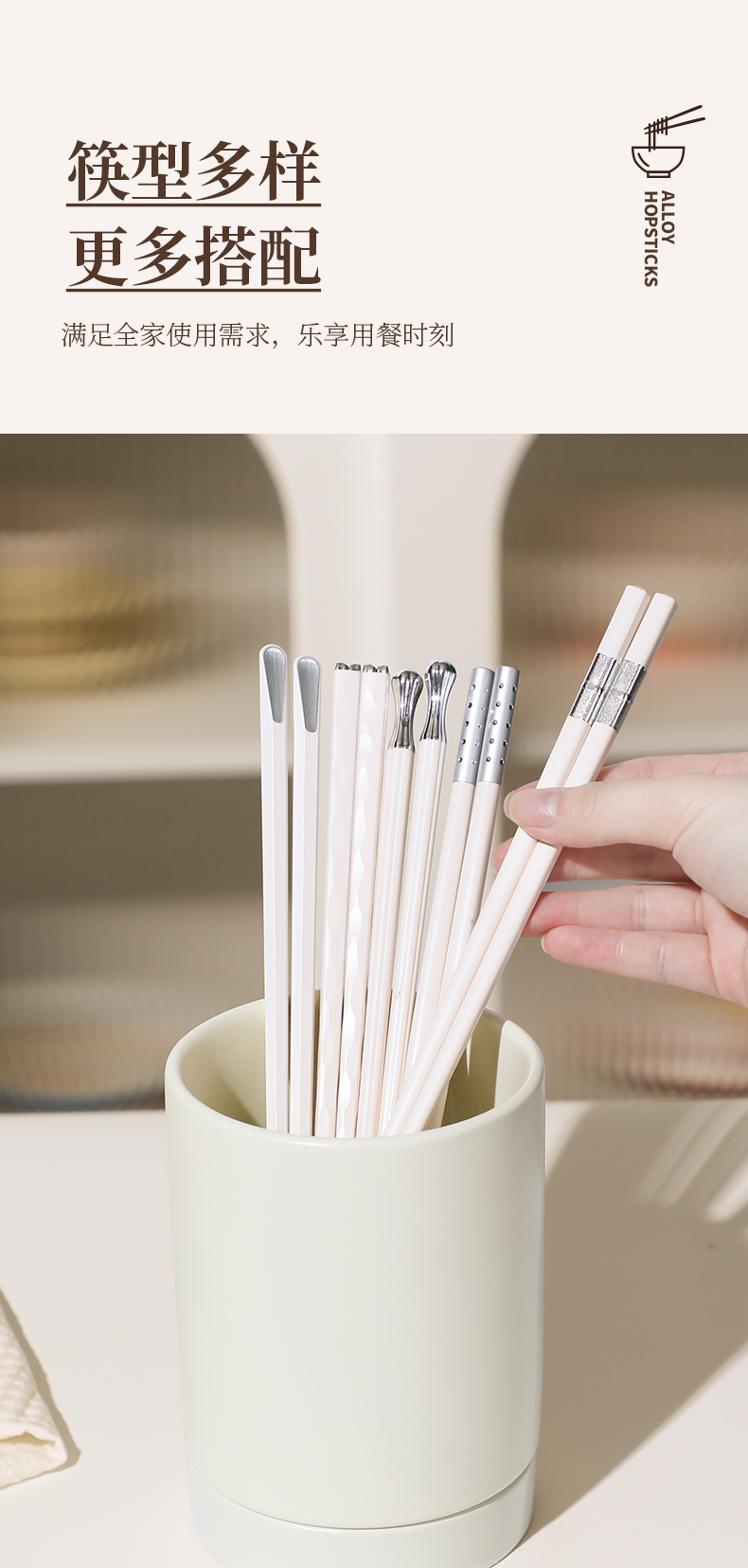 “家庭守护卫士!”【KMD-汉白简约花纹抗菌合金筷】玻璃纤维+高分子材料+银离子 耐磨耐高温 抑菌不发霉 文艺简约区分设计 人体工学设计方便好用 给家里吃饭氛围增添新伙伴吧~