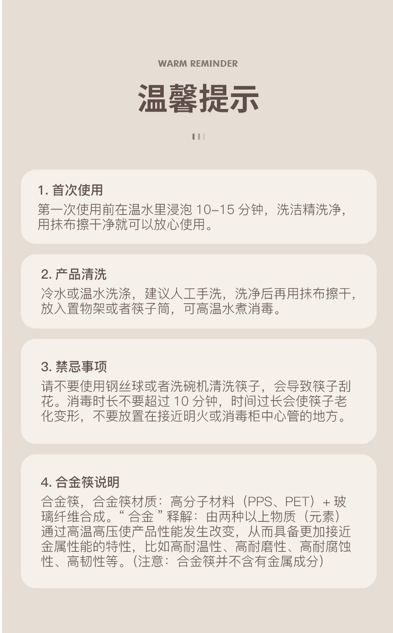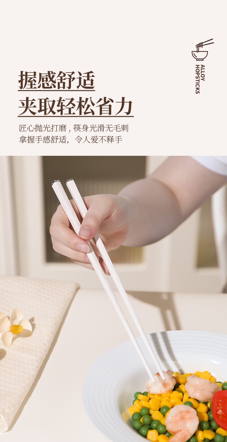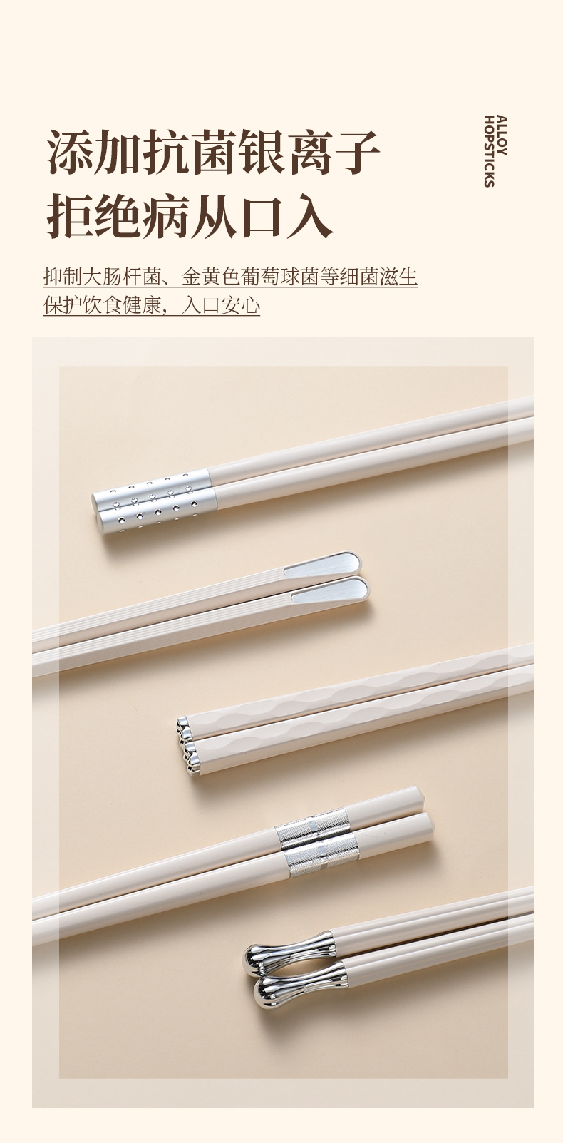 “家庭守护卫士!”【KMD-汉白简约花纹抗菌合金筷】玻璃纤维+高分子材料+银离子 耐磨耐高温 抑菌不发霉 文艺简约区分设计 人体工学设计方便好用 给家里吃饭氛围增添新伙伴吧~