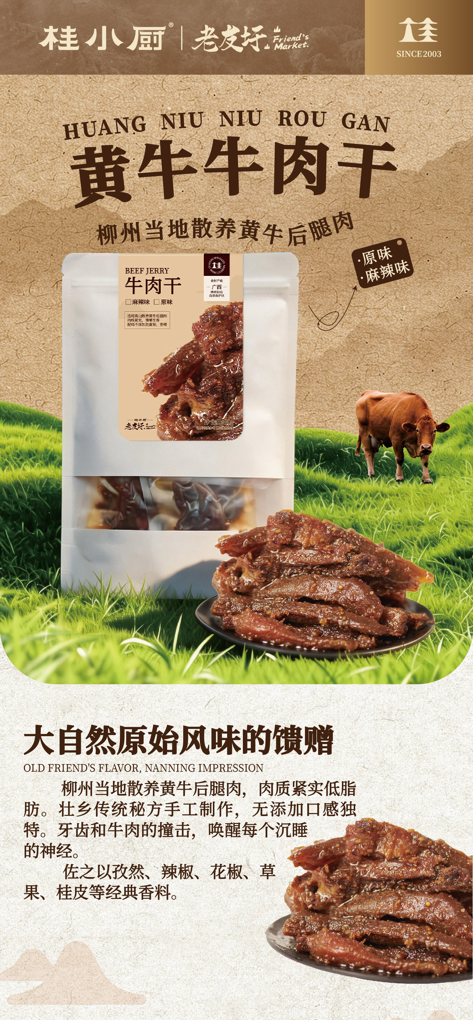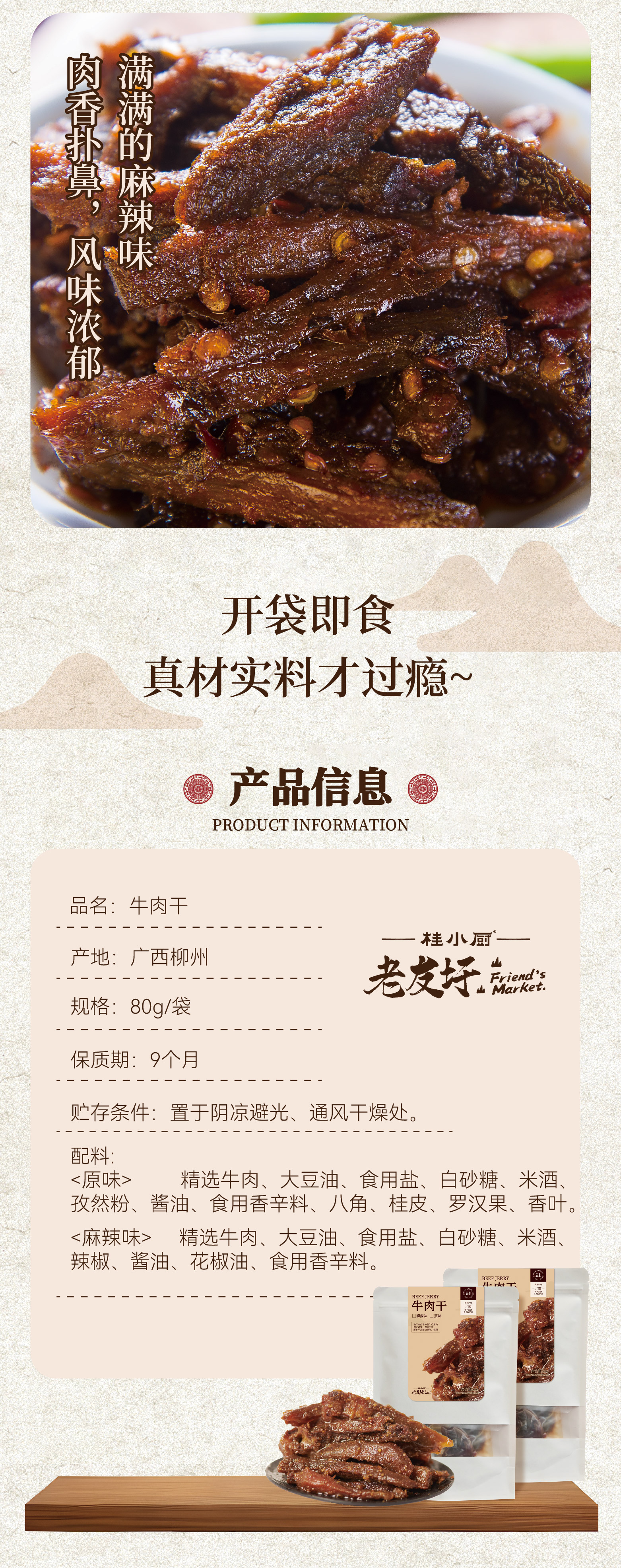 柳州黄牛牛肉干(后腿肉直切,嚼劲十足)原味麻辣两种