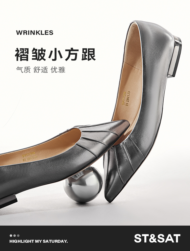 星期六拼色羊皮浅口方跟休闲女鞋SS33111184