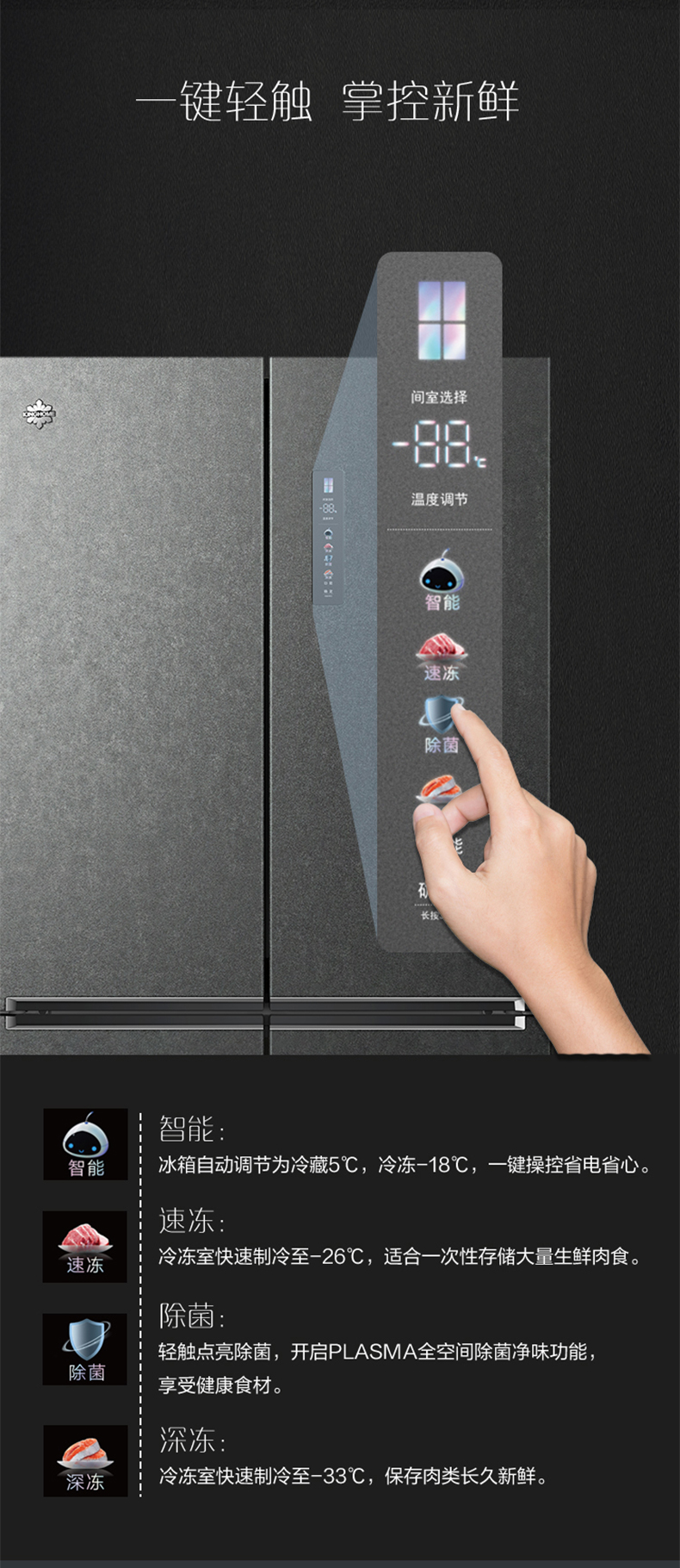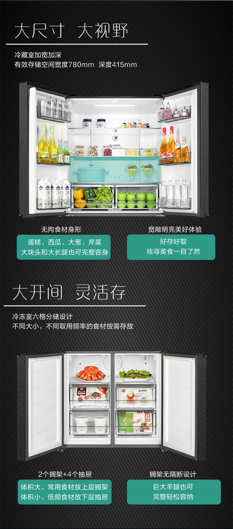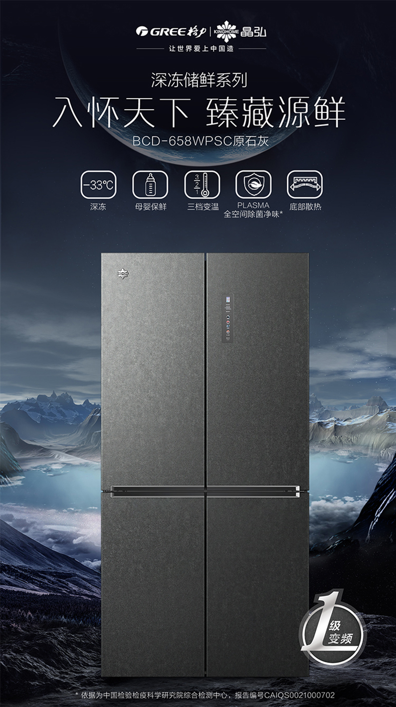 晶弘·十字对开门冰箱 658L BCD-658WPSC/原石灰