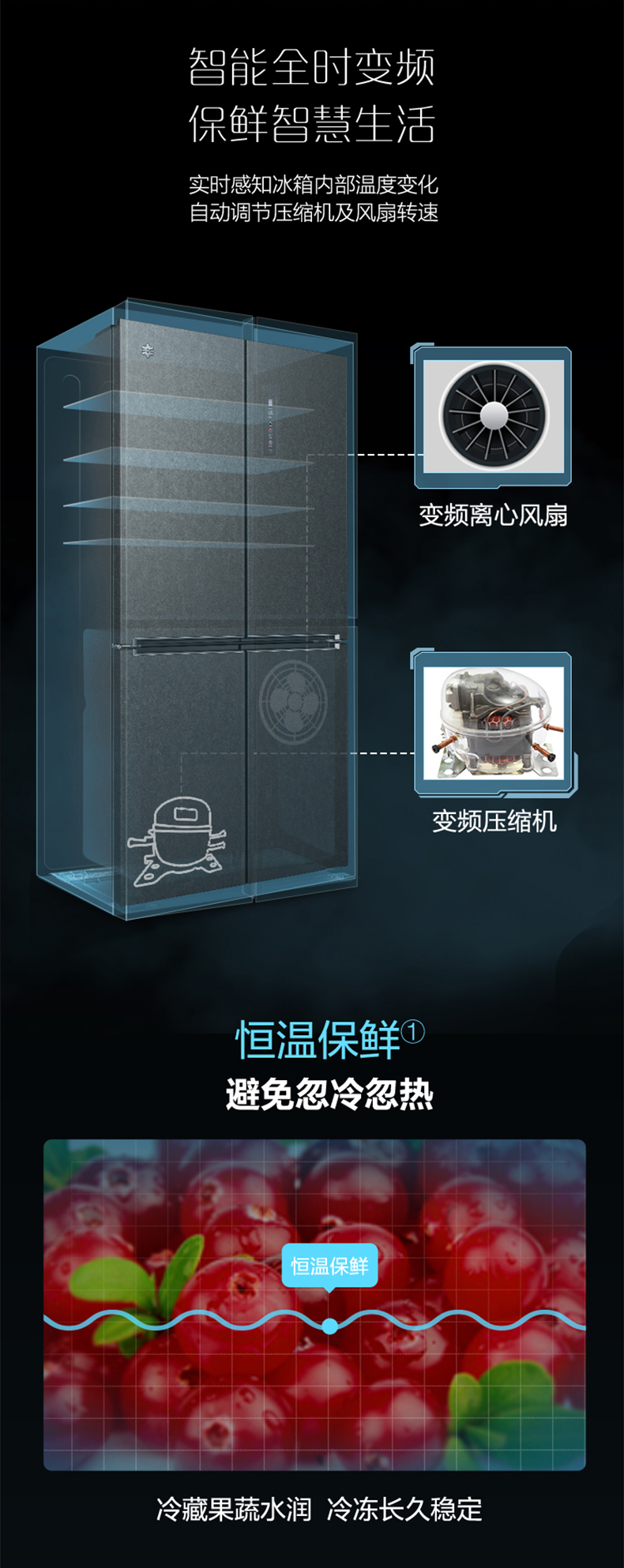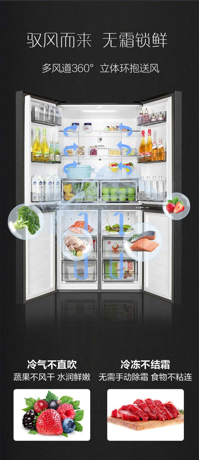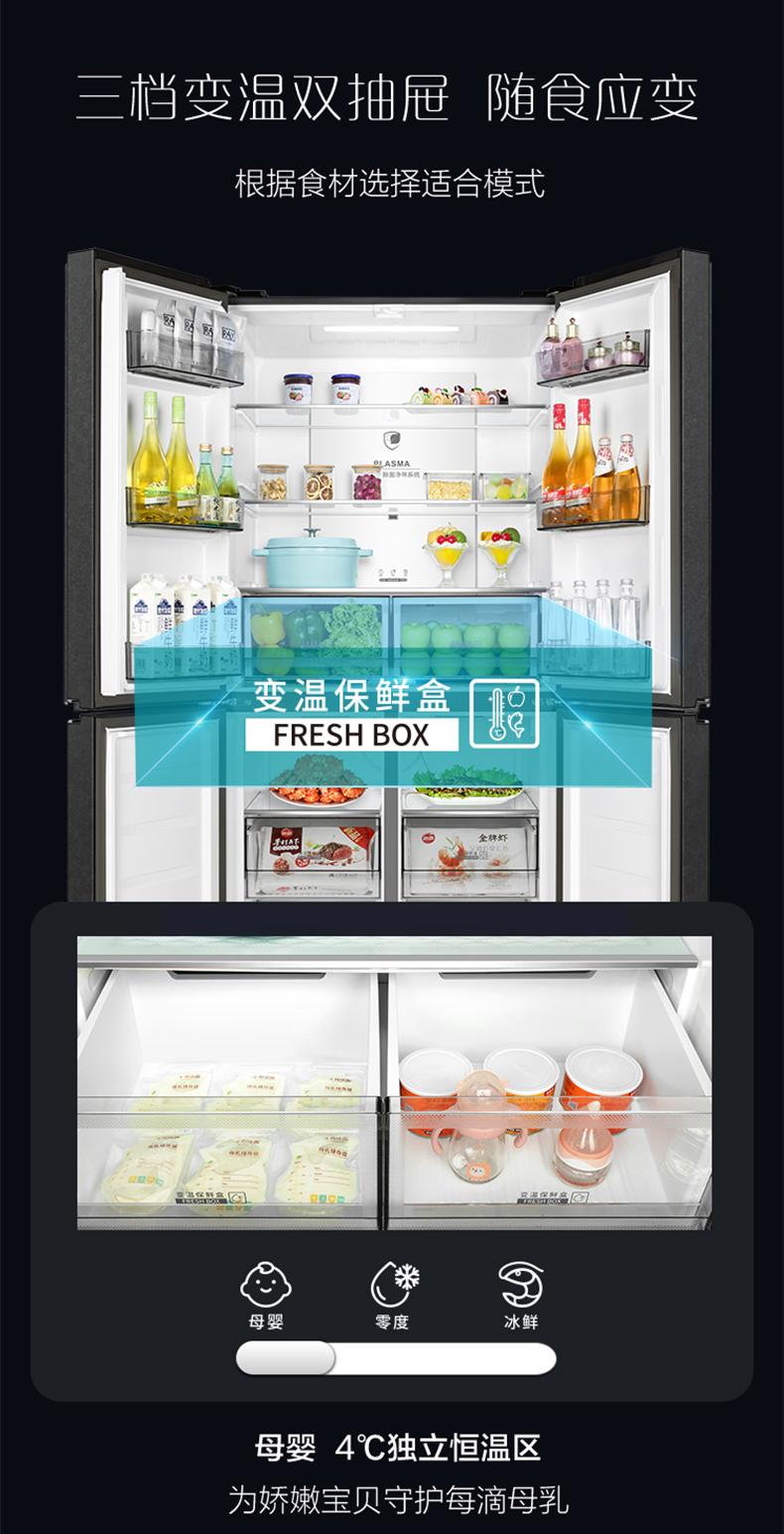 晶弘·十字对开门冰箱 658L BCD-658WPSC/原石灰