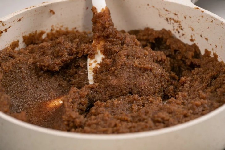 过筛的枣泥细滑柔顺,放在小锅上慢慢熬煮
