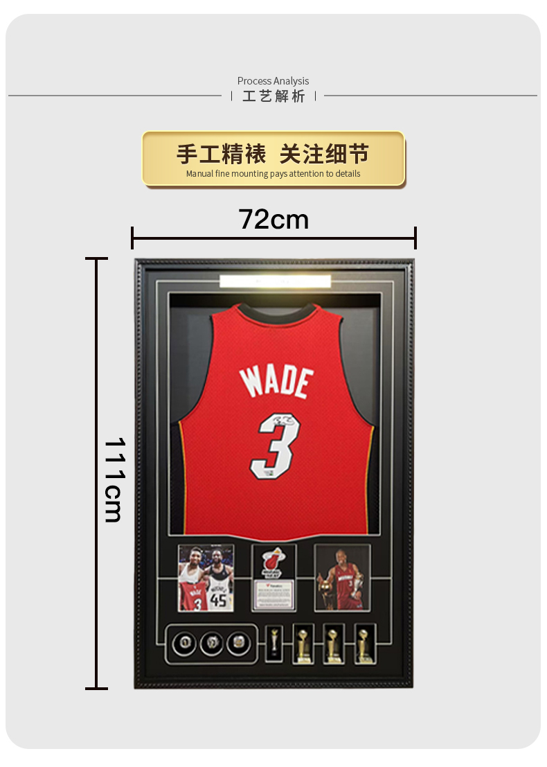 收藏系列 韦德 热火队3号红色 亲笔签名球衣