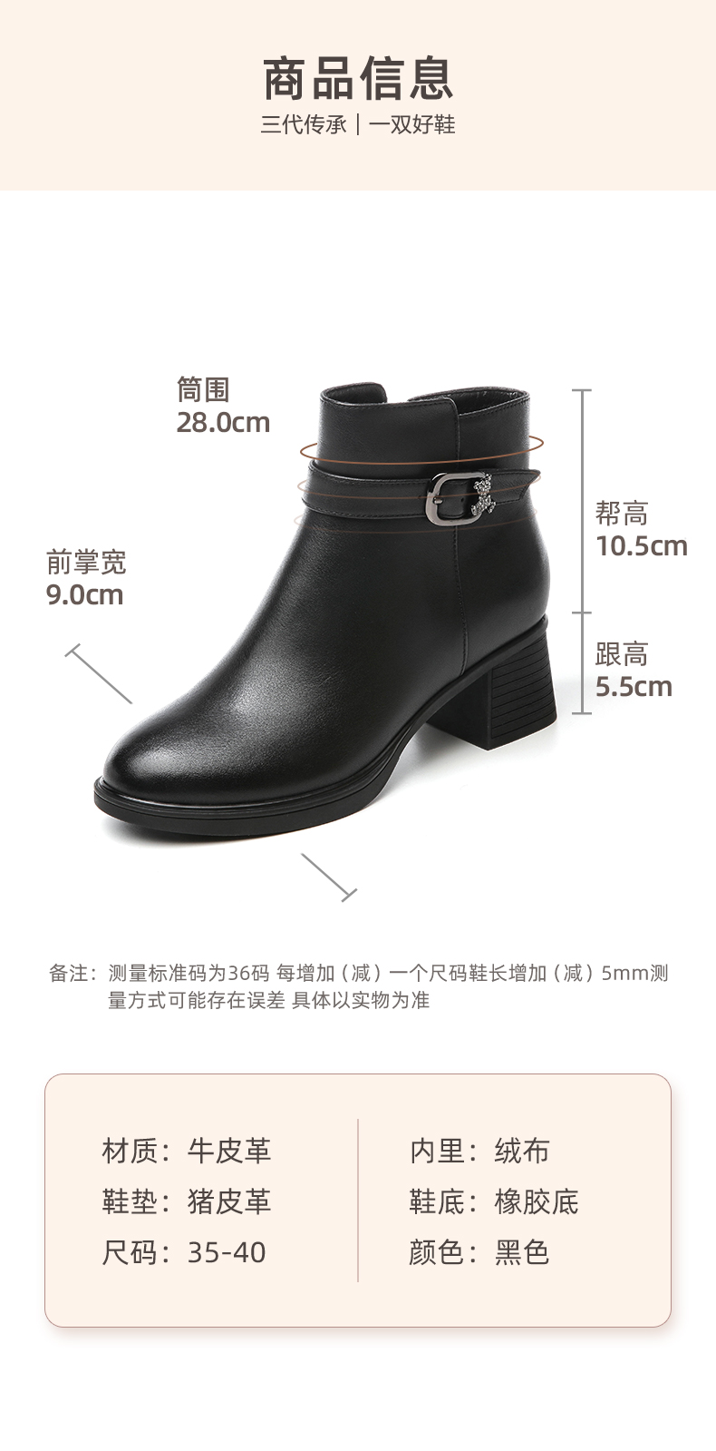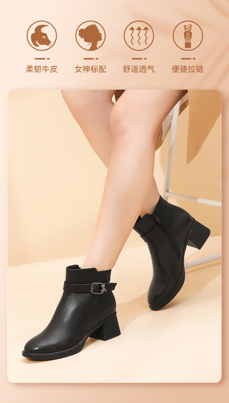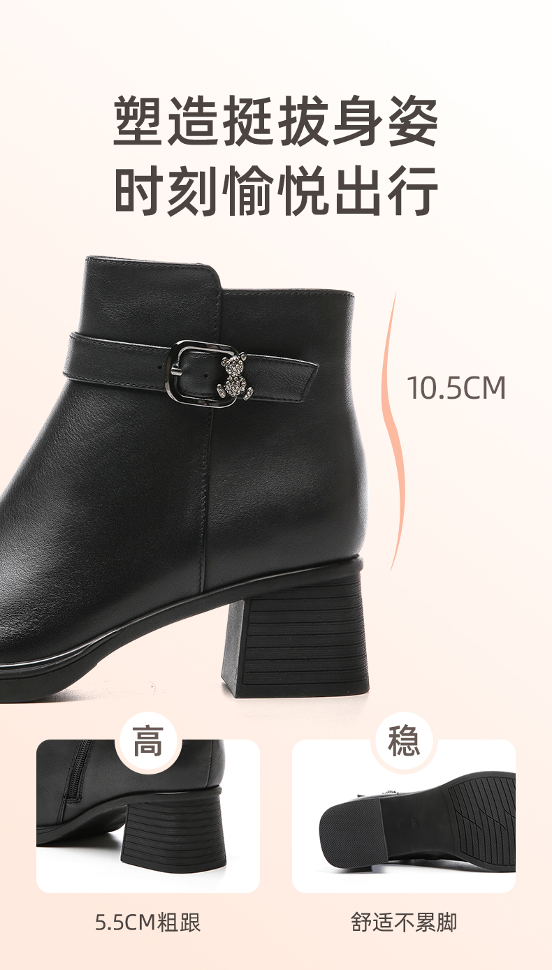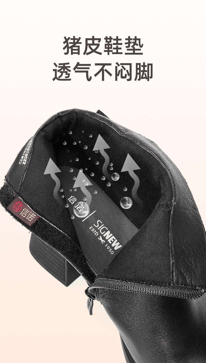 信诺超火短靴2022新款秋冬季女春秋单靴妈妈皮鞋女式真皮高跟靴子22M193-A5