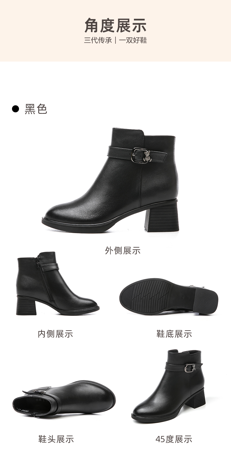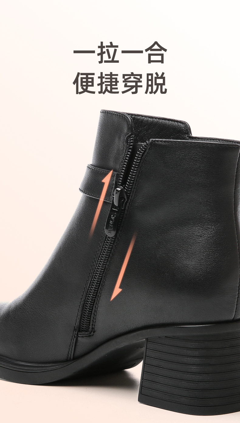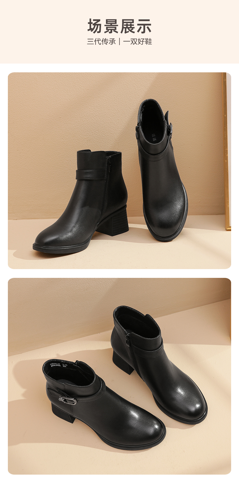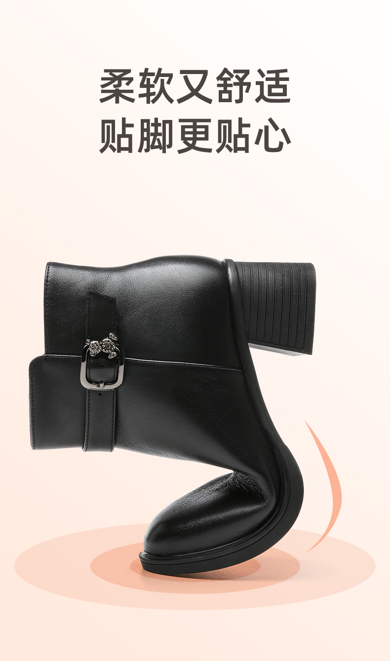 信诺超火短靴2022新款秋冬季女春秋单靴妈妈皮鞋女式真皮高跟靴子22M193-A5